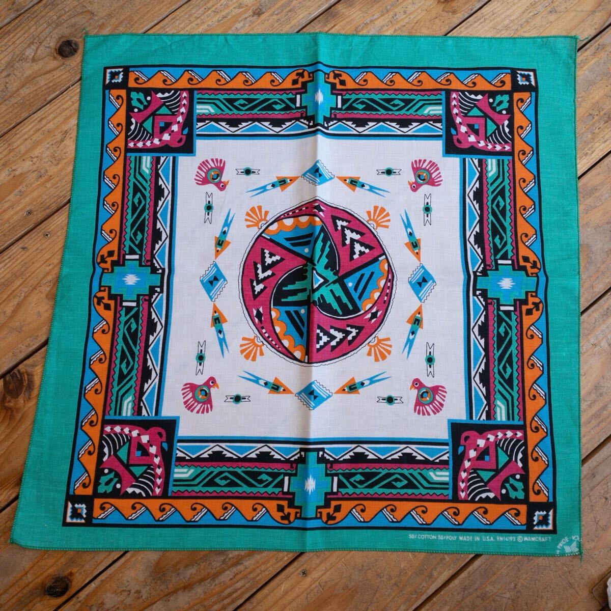 アメリカで購入したセカンドハンド(古着)の、 ネイティブ柄のバンダナです。