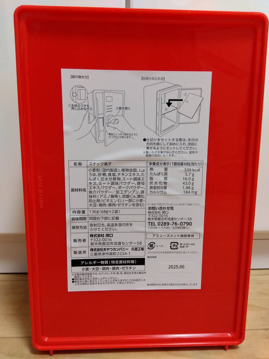 未開封品なので、中にチキン味のお菓子が入っていますが、賞味期限が25年6月で切れています。中身は到着後にご自身で破棄していただきますようお願い申し上げます。