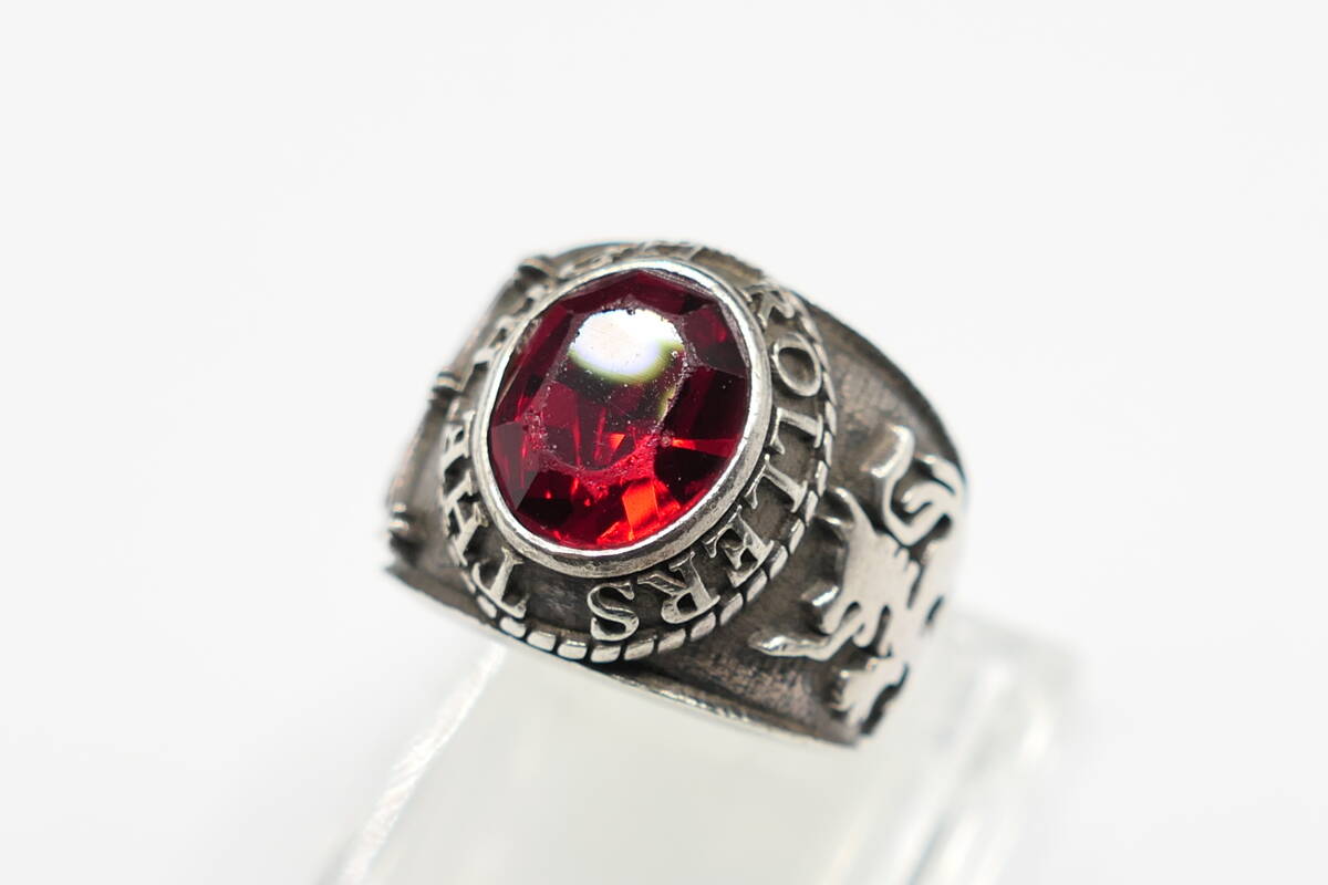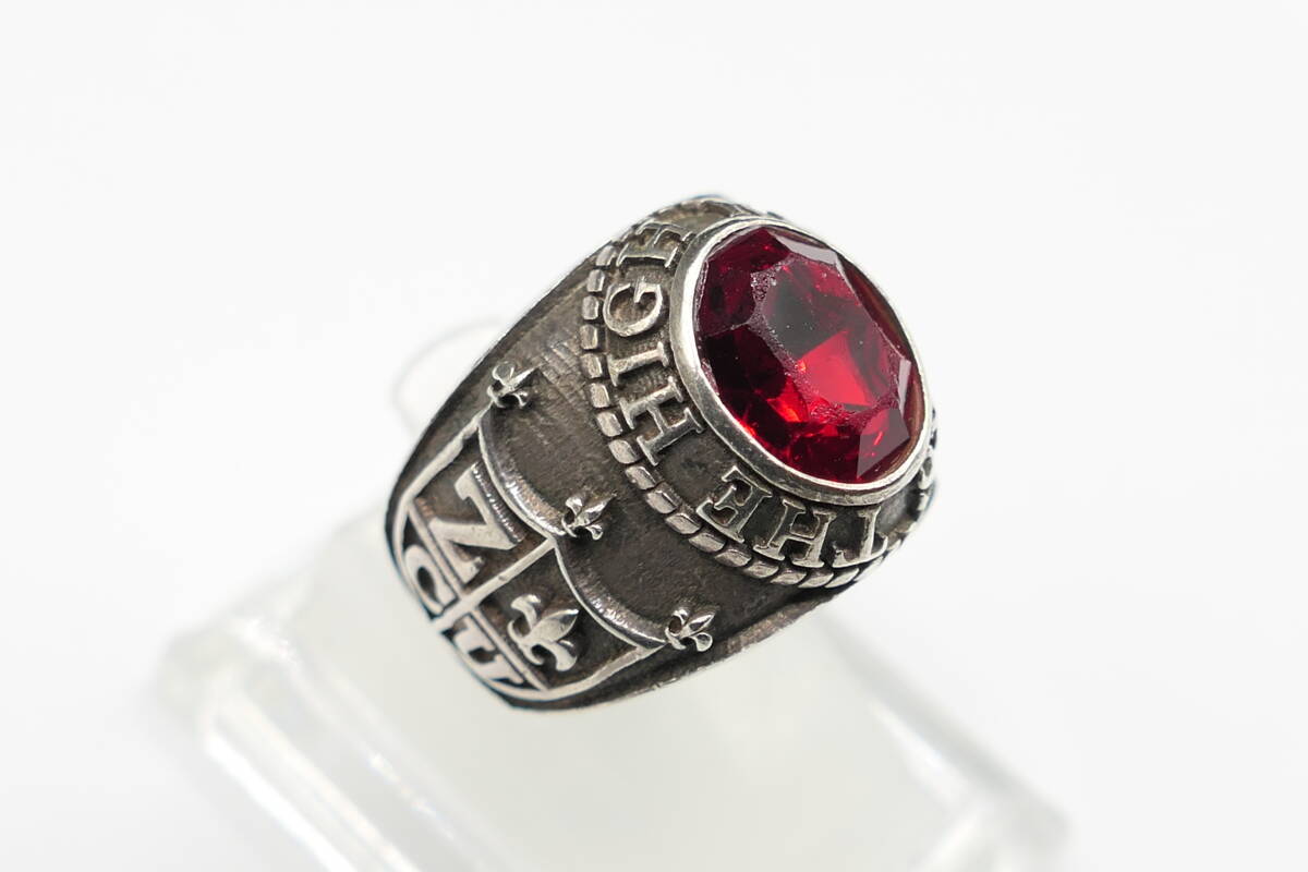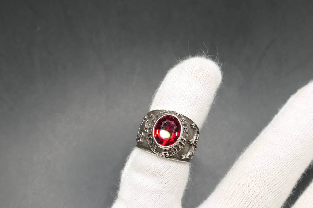 ジャムホームメイドの定番デザインカレッジリングをベースに、赤い宝石やサイドの「ZCU」刻印など、随所にカバンドズッカらしいデザインを採用しました。