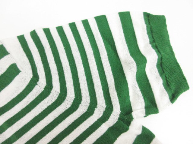 未使用【ザノーネ ZANONE】 812966 ZM345 Z5487 定価44000円 リネン混 ボーダー 半袖ニットポロシャツ (メンズ) size44 緑×白◯10ZZN0760