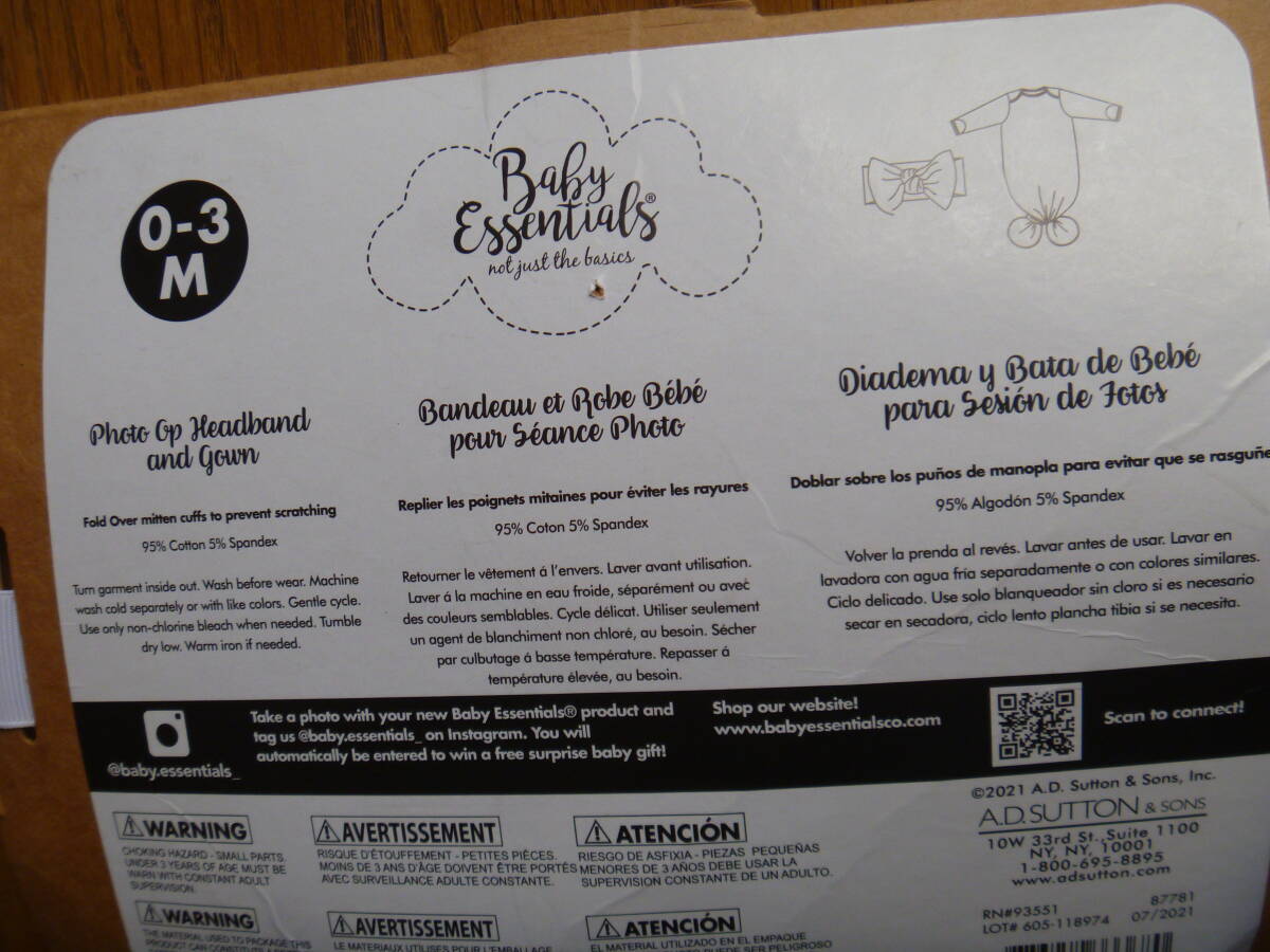 BABY ESSENTIALSでGOWN と HEADBANDで御座います。95% COTTON, 5% SPANDEXです。