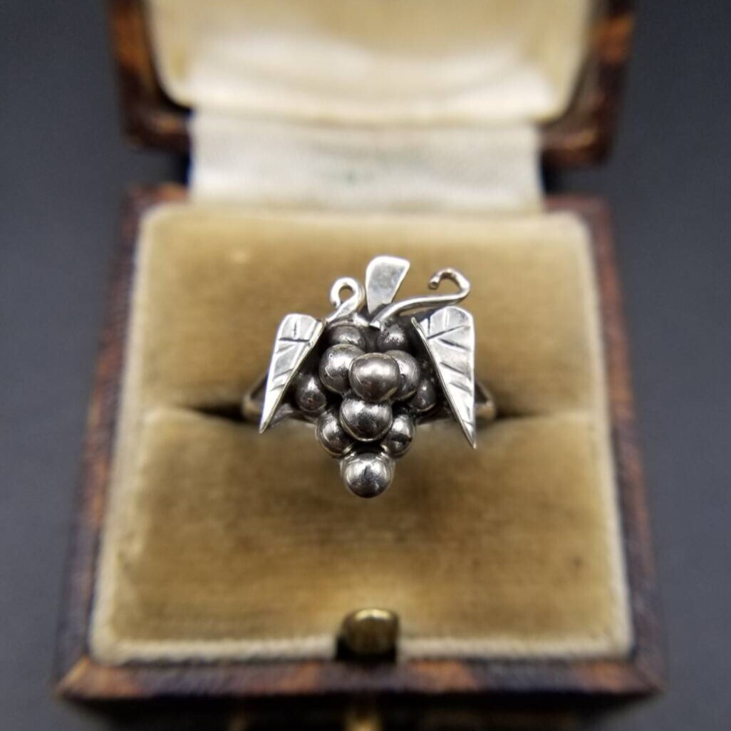 メキシコ 925 シルバー 葡萄の房 立体彫刻 ヴィンテージ フルーツ リング 銀細工 指輪 レトロ Taxco タスコ モチーフジュエリー R15-V