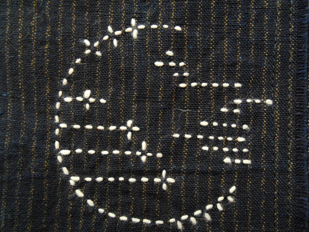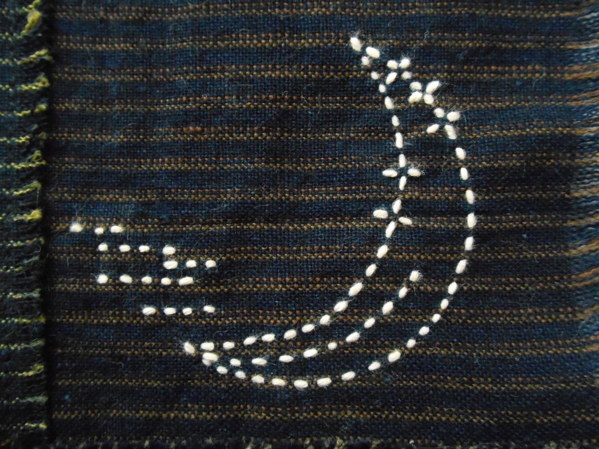 <137>刺し子 手刺し 古布藍染縞木綿 手作り材料に
