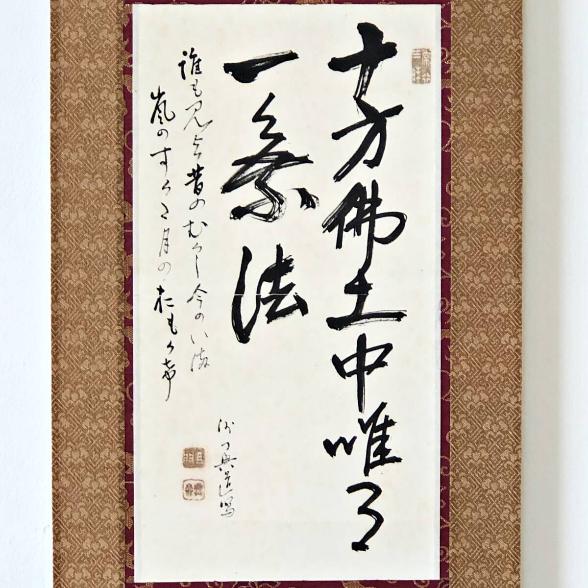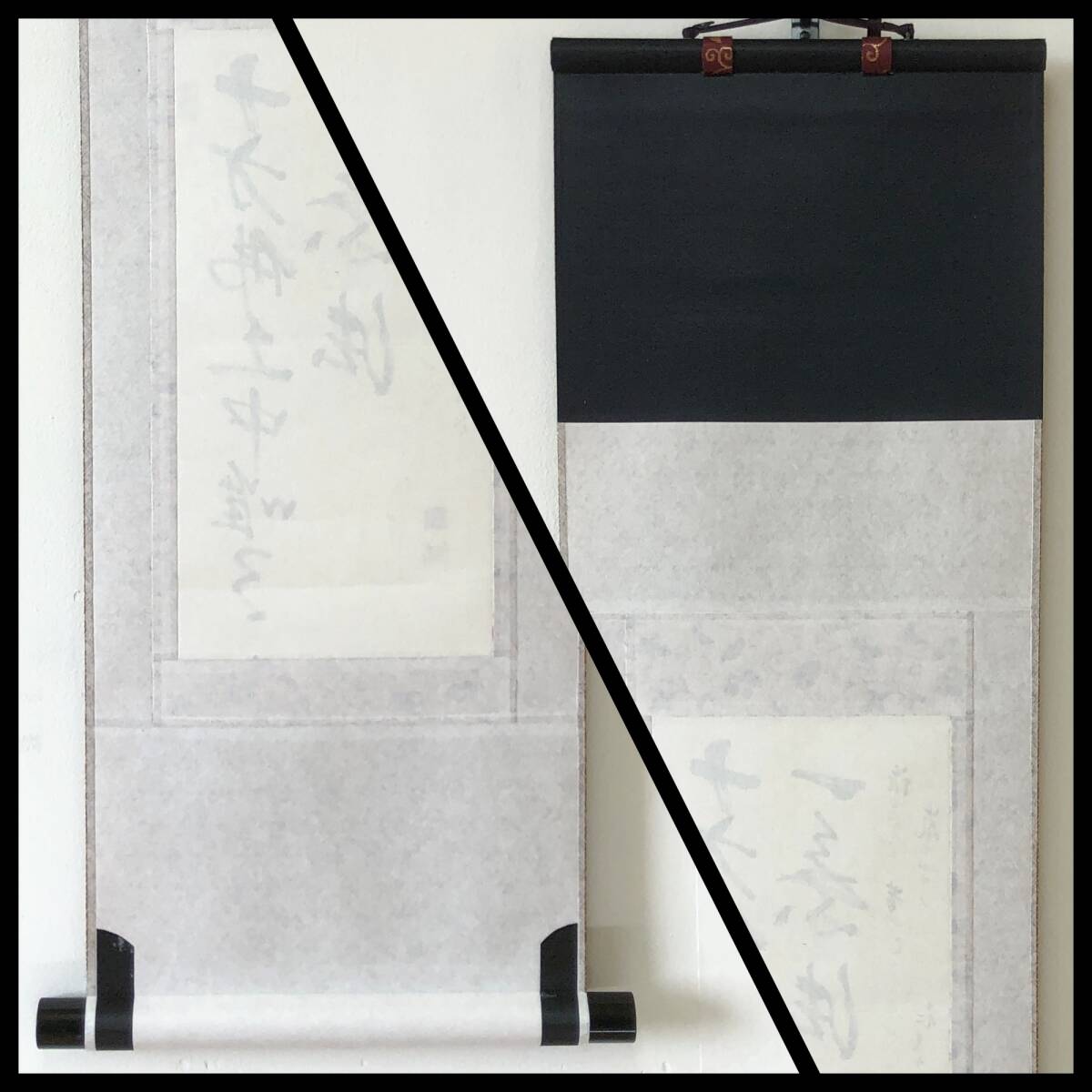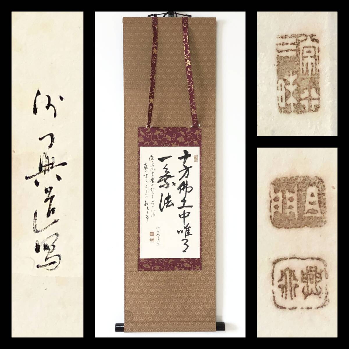 全体サイズ(軸先含む) : 91.5×32(cm) 本紙サイズ : 33×17.5(cm) 若干の誤差はご了承下さい。 本紙:全体にまだらシミがあります。 表具:再表具済みのため良好な状態です。 箱:合箱付。 その他、詳細は画像をよくご確認ください。 画像で表現しにくい薄い汚れやシミは予めご了承下さい。 画像は現物を撮影しておりますが、照度、遮光、モニターによっては実物と色目が異なって見えることがありますので、ご注意下さい。 |