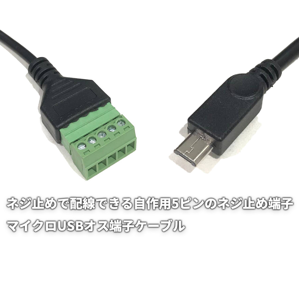 ネジ止めで配線できる自作用5ピンのネジ止め端子 - マイクロUSBオス端子ケーブル