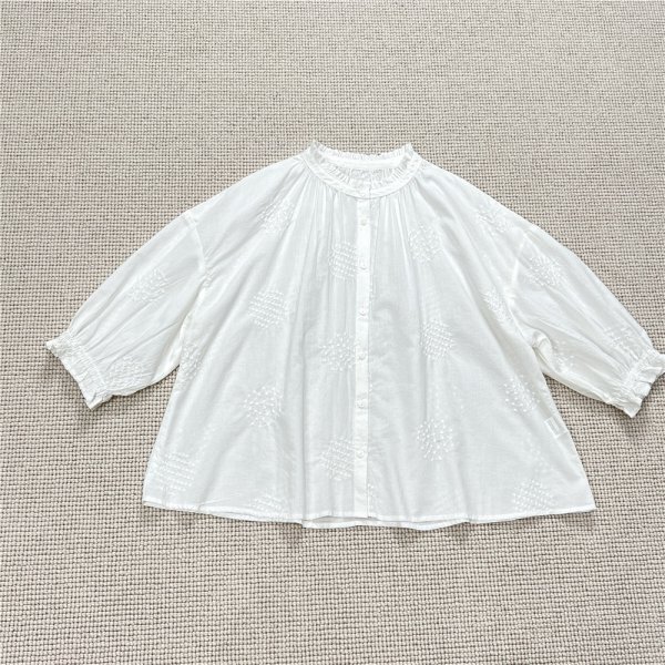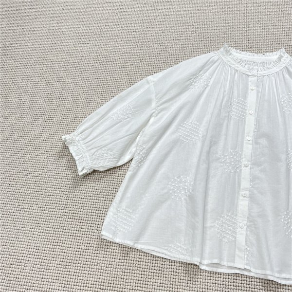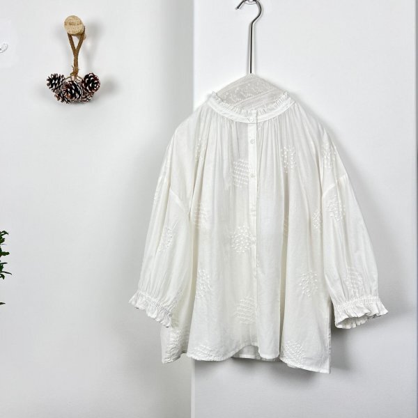 ps 0706 豪華全刺上品柄 チュニック トップス フリーサイズ 高質 綿100% ナチュラル 通気性肌触り抜群 ゆったり ホワイト