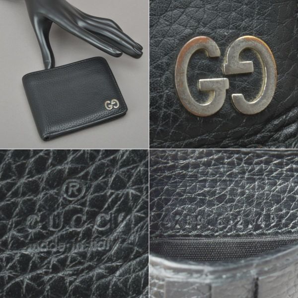 美品 GUCCI グッチ GG 二つ折り財布 札入れ カーフレザー ブラック 箱付き 473916 薄型 コンパクト ウォレット /070515-18/k.f/k.d