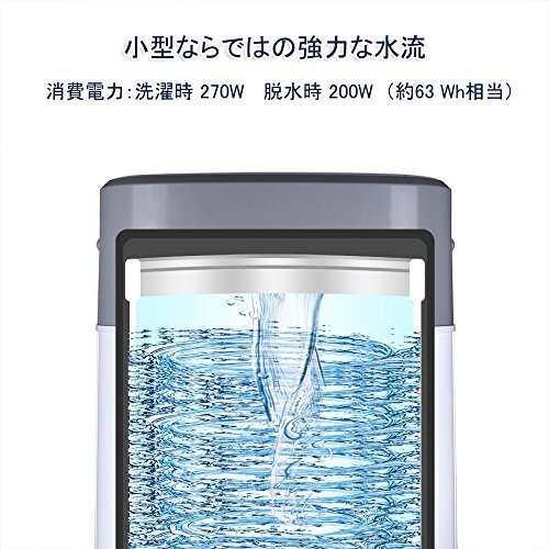 【強力な水流】容量が小さいほど、回転するパルセーターが作り出すらせん状の水流はより強くなるので、小型ならではの強力な水流で汚れをしっかり落とします。消費電力:洗濯時 270W 脱水時 200W(約63 Wh相当)