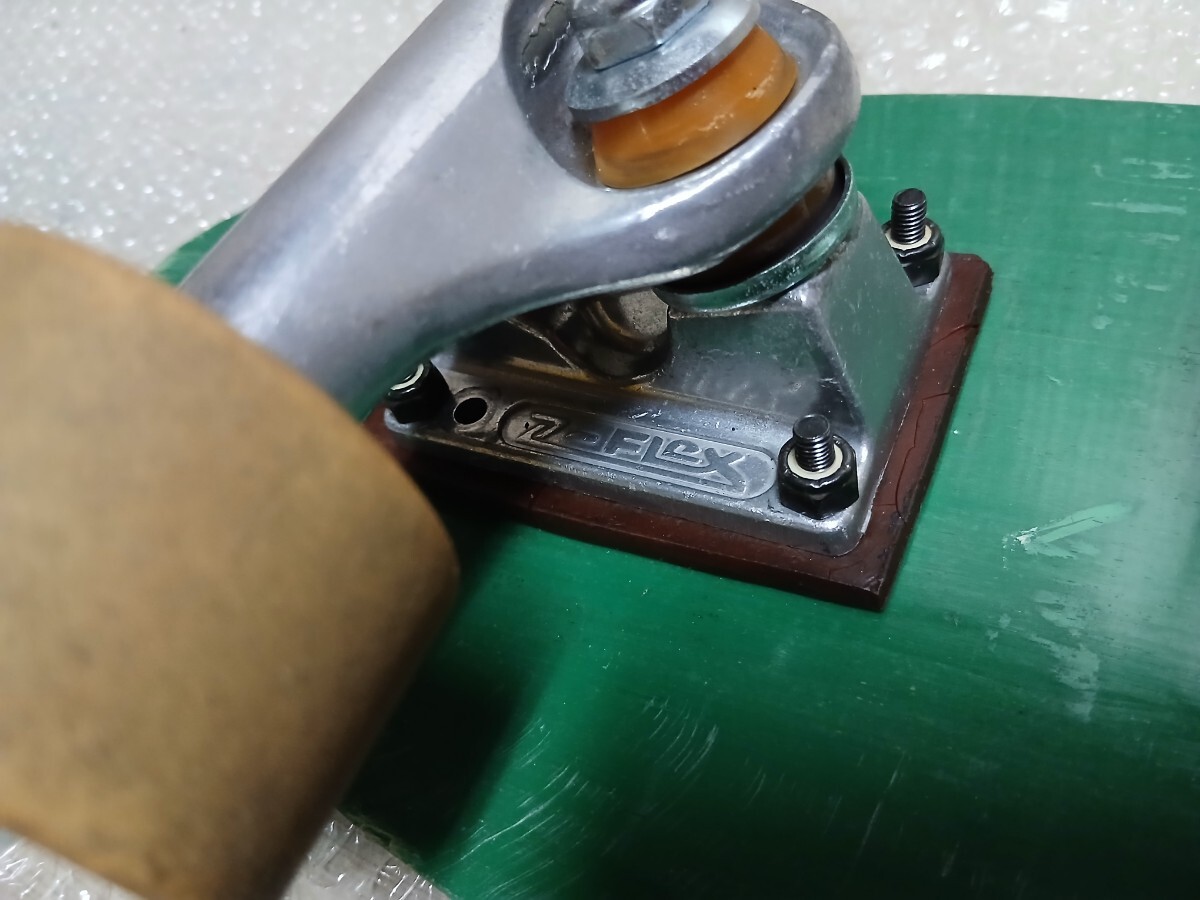 ファイバーグラス×ウッドデッキにz-flexトラックとウィールがセットされております。