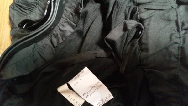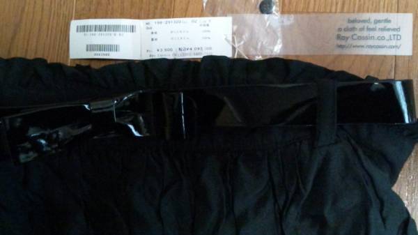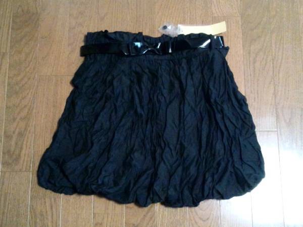 リボンベルト・タグ・予備ボタン付きの新品☆人気のブラックskirtが半額以下~★ポリエステル100%・定価税込4095円。フリーサイズは総丈最長部約42cm・身幅最上部約34cm・裾幅約51cm。素人採寸なので誤差はご了承を。