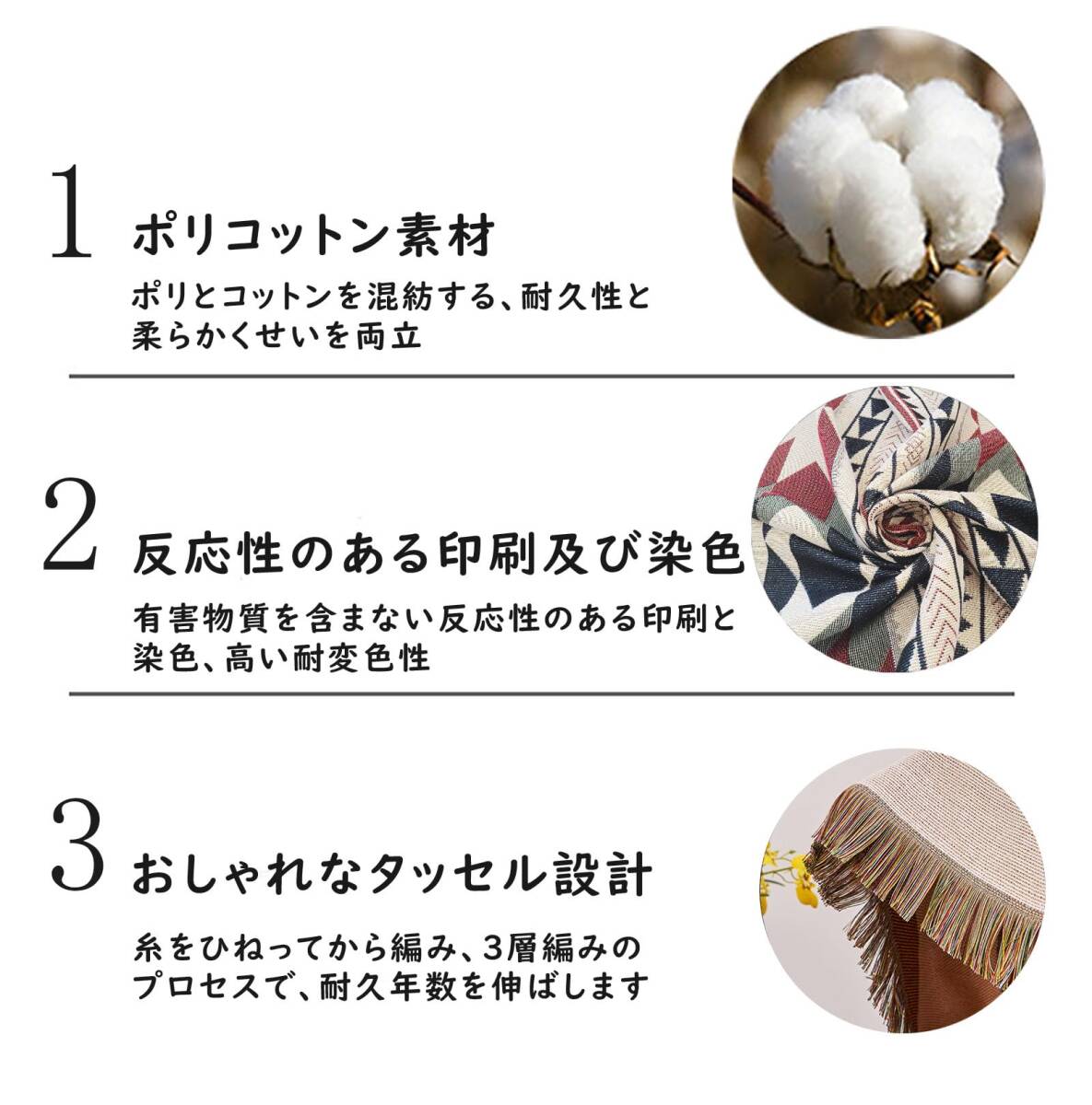 【おしゃれなデザイン】チェコのボヘミア地方の民族衣装に由来し、自由奔放な生活を送るジプシーのファッションや民族衣装を取り入れたスタイルを採用したブランケットは色もフリンジもジプシー人の放浪な感じを溢れられます。男女老若問わず好かれる柄です。