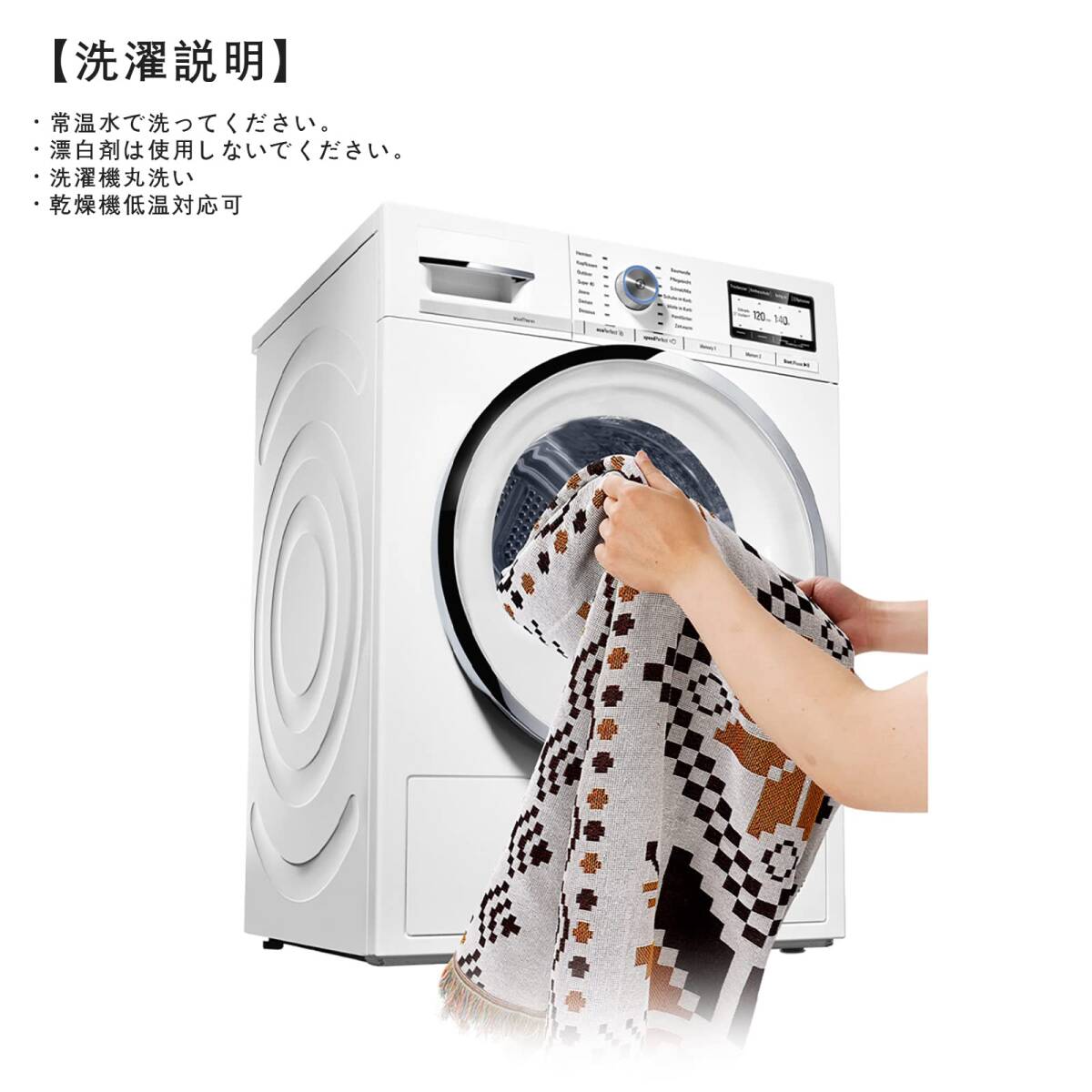 【お手入れ簡単】ピックニックブランケットとして使った後、泥がたくさん付いて汚れてしまう場合、すぐに洗う方がいいです。洗濯機や乾燥機で洗濯可能のポリエステルとコットン生地で、特殊な工技を加えて丸洗いでも色褪せません。洗濯することで清潔さを保ち、ふわふわ感じを復活、心地よく使うことができます。