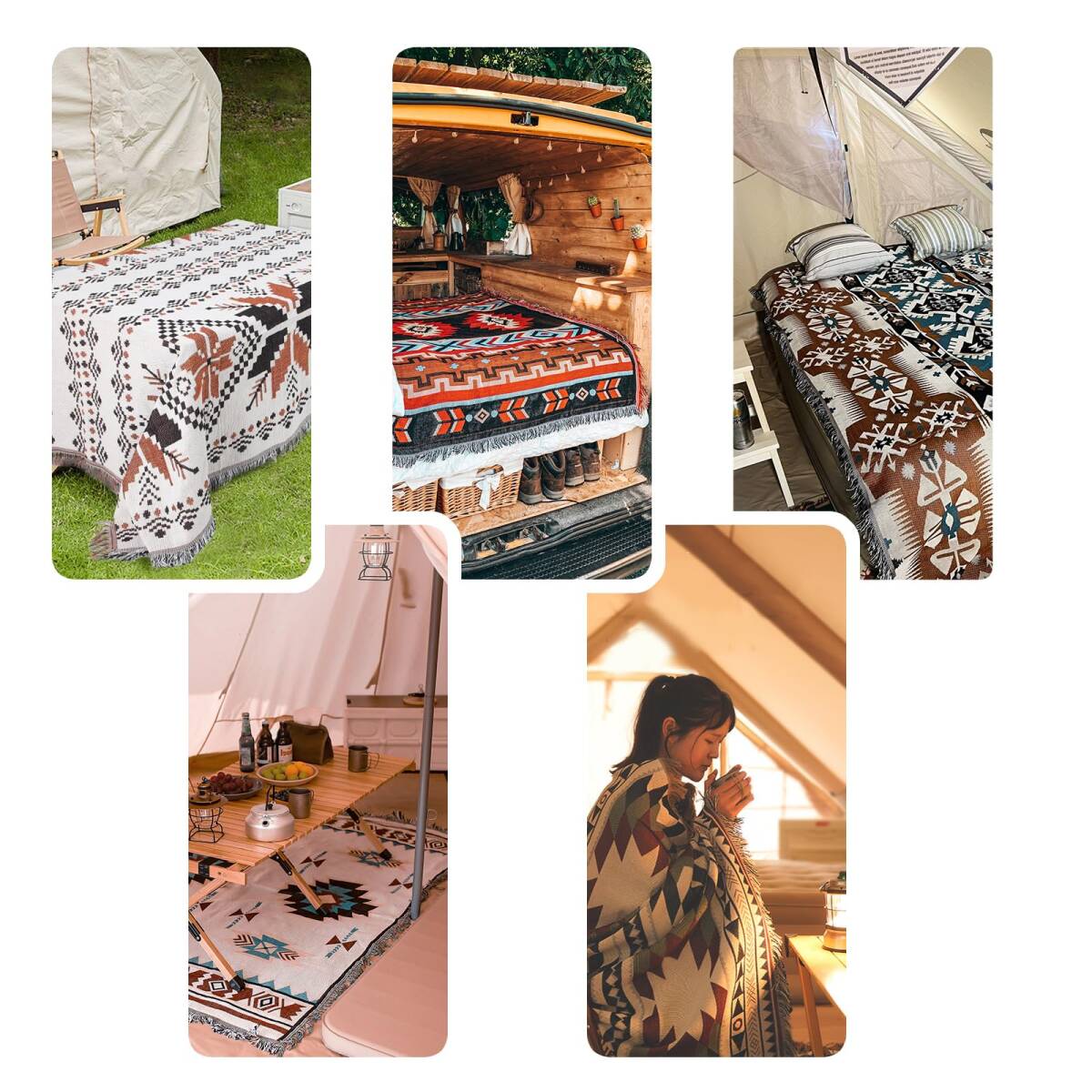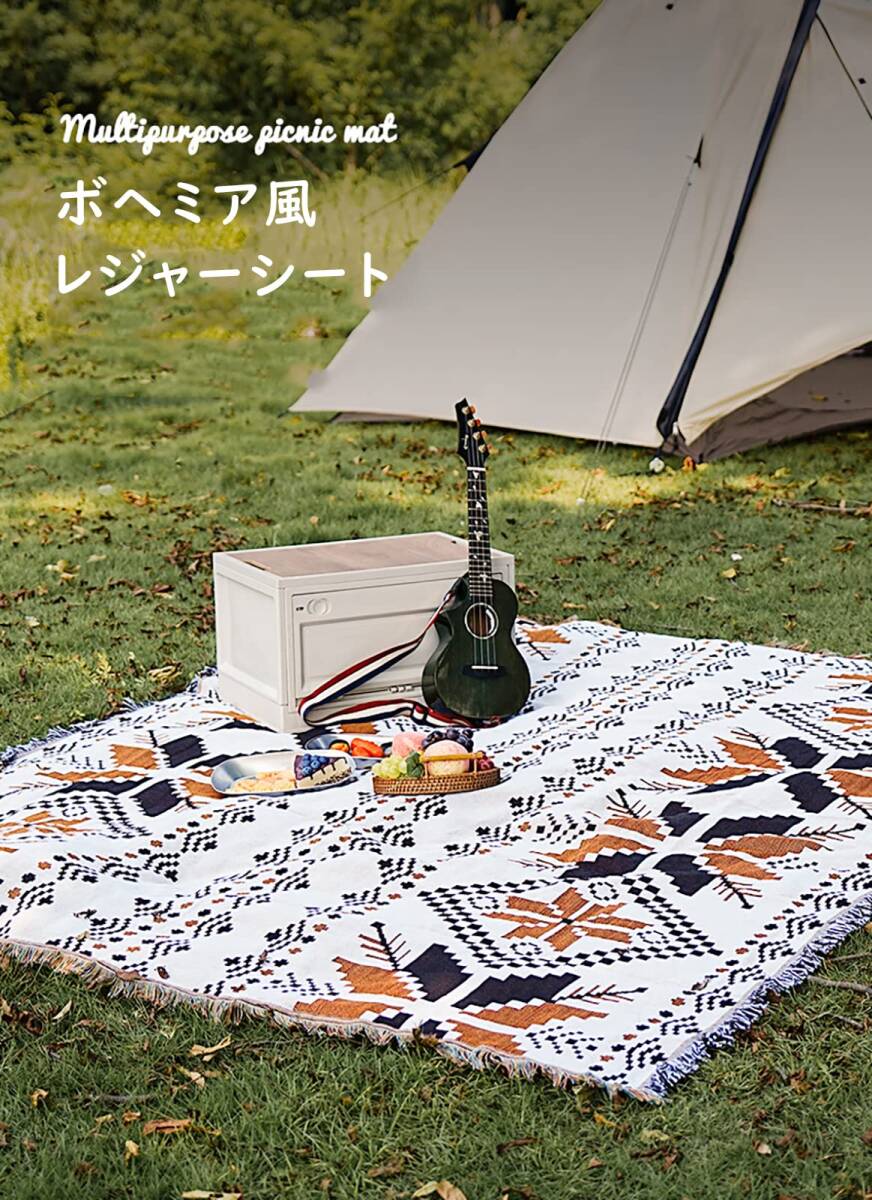 Qboo キャンプブランケット 毛布 ラグ ピクニックマット テーブルクロス ソファーカバー ベッドカバー ひざ掛け 多機能 ポリコットン素材 耐磨性 リバーシブル オールシーズン 防塵カバー アウトドア毛布 コンパクト キャンプ 海 ビーチ 登山 おしゃれ エスニック ボヘミアン