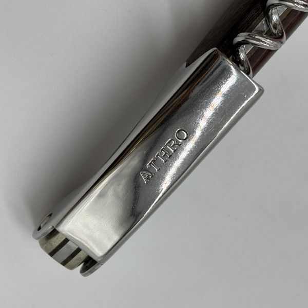 | 商品説明 | ATHRO ソムリエナイフ ウッド ブラウン ソムリエナイフになります。 付属品:なし サイズ:収納時 全長約12.0cm 刃渡り約4.0㎝ ※素人計測の為、多少の誤差はお許し下さい。