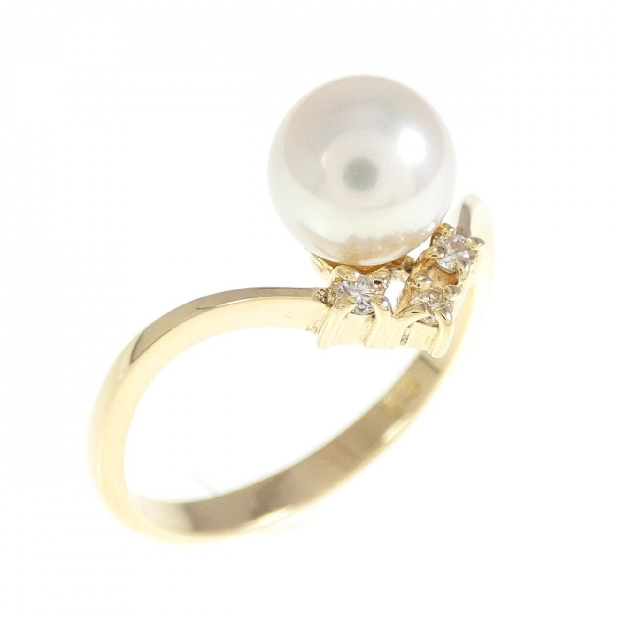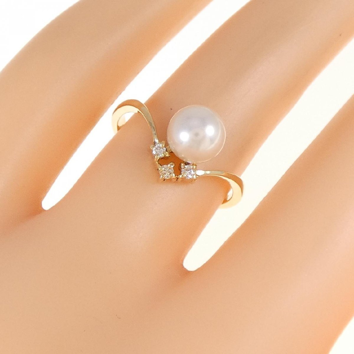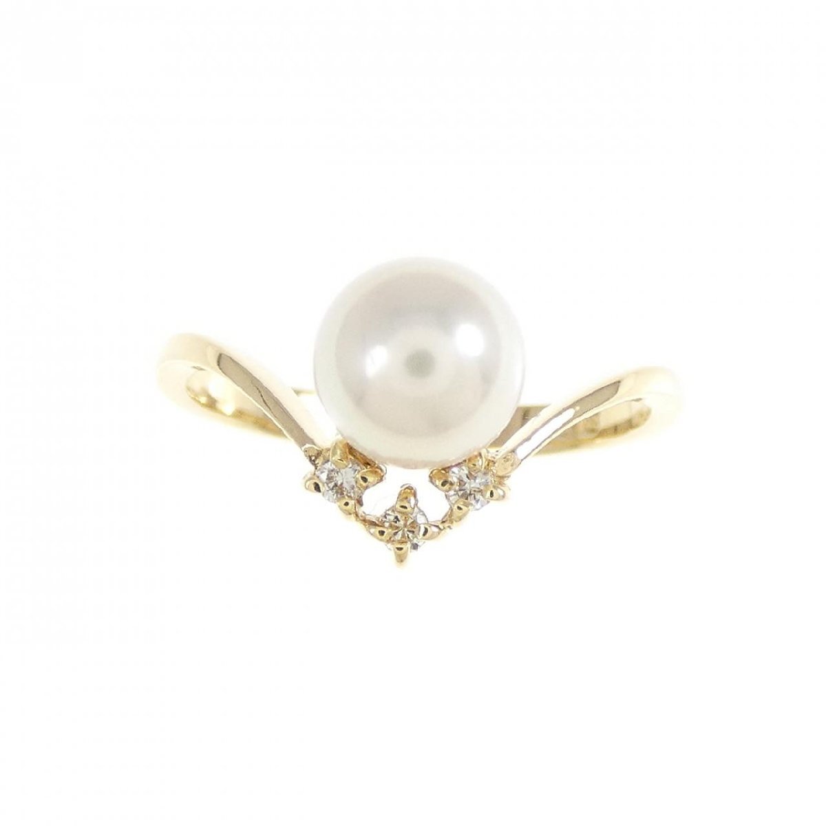 優しく淡い光が上品なアコヤパール。V字フォルムのアームが指を細く見せてくれます。