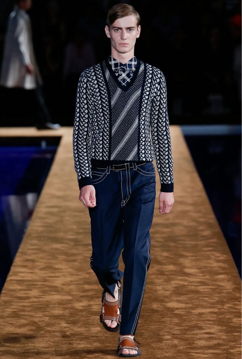 LOOK 27でニットのインナーに着用(画像最後)と同柄のステッチワークの無いタイプで、プラダらしい計算し尽くされた素晴らしいパターンが作る美しいシルエットが堪らない1着だと思います。