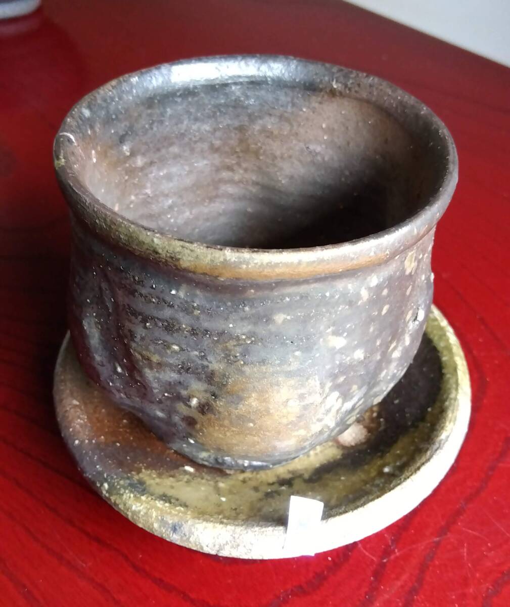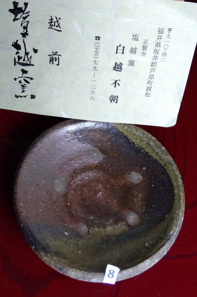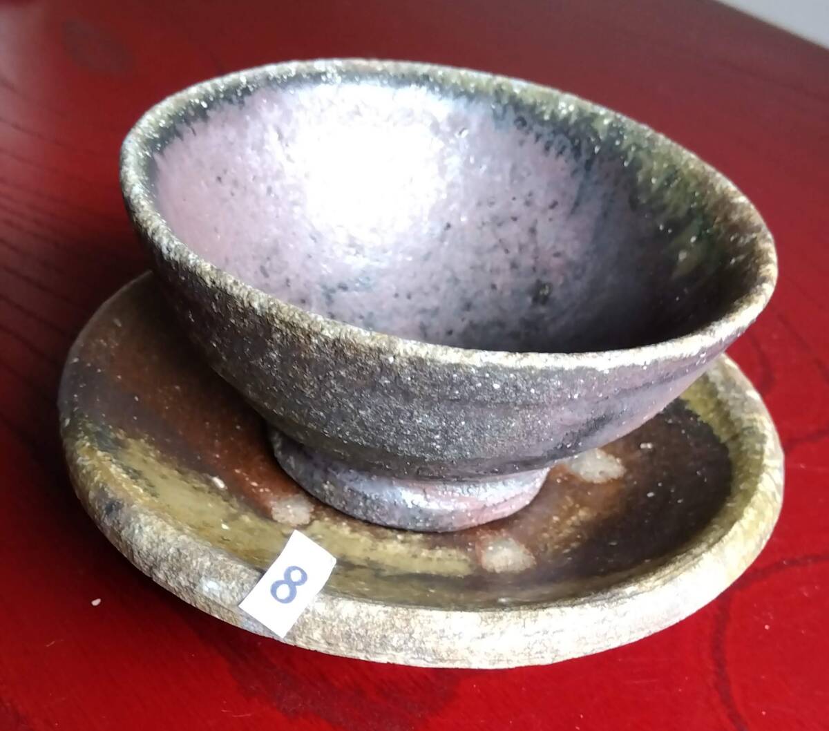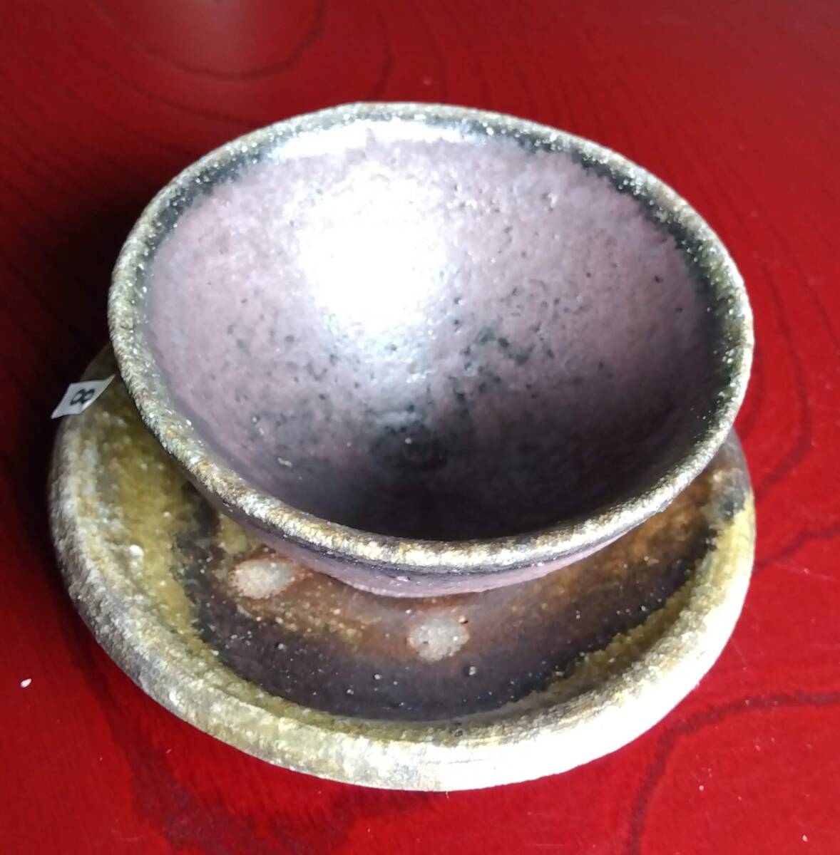 越前焼の名工 白越不朝(塩越窯)自然灰釉の究極美が迸る逸品 大小のぐい呑み/湯呑2種及び茶托3点セット No:8 穴釜陶芸美に全霊を捧げられている白越不朝師が亘ずね感謝されている薪と炎の神様がもたらしてくれた自然灰釉の究極の逸品です。師の「至高の技」が心和む「究極窯変美」に焼き上がり、器に浮き出る自然釉は越前焼魅力の世界を再確認させてくれます。 越前陶土「青ねば・赤べと・太古土」を活かす形で作られ、温かみのある土色に自然釉が組み合わさった魅力的な作品です。質素ながら極めて奥深い風合い 無限の幽玄美/崇高美おも感じさせる心和む自然灰釉美 技巧的表現をも還元焼成させ際立つ(陶土)が表す独特の質感自然釉(しぜんゆう)が織りなす作品です。 師がこれらの作品に使用されている技法【しのぎ:シンプルで上品さと荒々しさを併せ持ち日本の伝統的な装飾技法】「面取り」技法の1つであるしのぎが見事に表現されています。 また師の作品に於いては 口縁(こうえん)口造(くちづくり)が薄く、特にほんの少し外側に反って製作されている為 大変口当たりがよく、すっと口の中に入ってきます。 器は、素朴でありながらもモダンな印象を持ち、和洋どちらにも馴染みます。 また窯の中の温度や置かれた場所によってまったく異なる模様や色合いが出ていますので、薪と炎の神様が生み出した偶然の景色を楽しみ 器そのものを育てる事を楽しんで下さい。 茶托は135mm前後の口径約10mm厚みの茶托皿を3本ねじたてによる約60mm直径15mm厚のどっしりとした高台が茶托皿を支える重厚な仕上げとなり全面をおおう自然灰釉美がぐいのみ湯を幽玄美へいざないます。 落札時 2番目 又は 3番目のどちらの作品を選択されたのかご連絡宜しくお願い致します。【 No:8 サイズ ぐいのみ/湯のみ 小 口径95mm高さ49/50mm高台12mmX46mm 大 口径85/88mm高さ84/88mm高台12mmX55mm 茶托サイズ: 口径118mm高さ27mm 高台径68mm厚み10mm 】