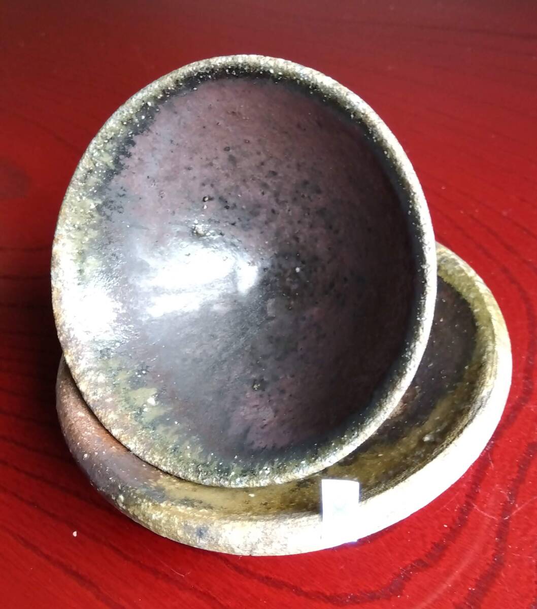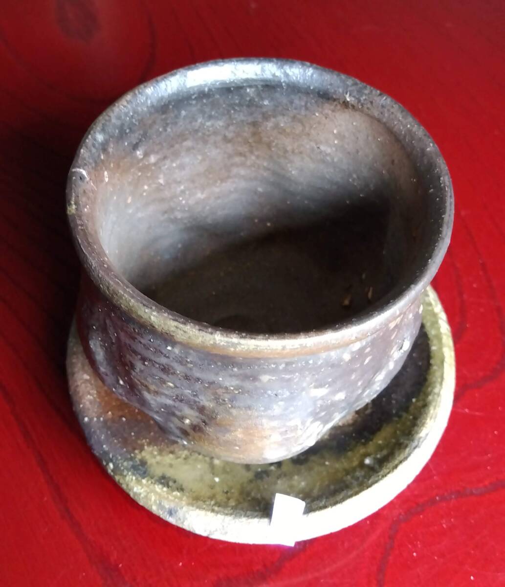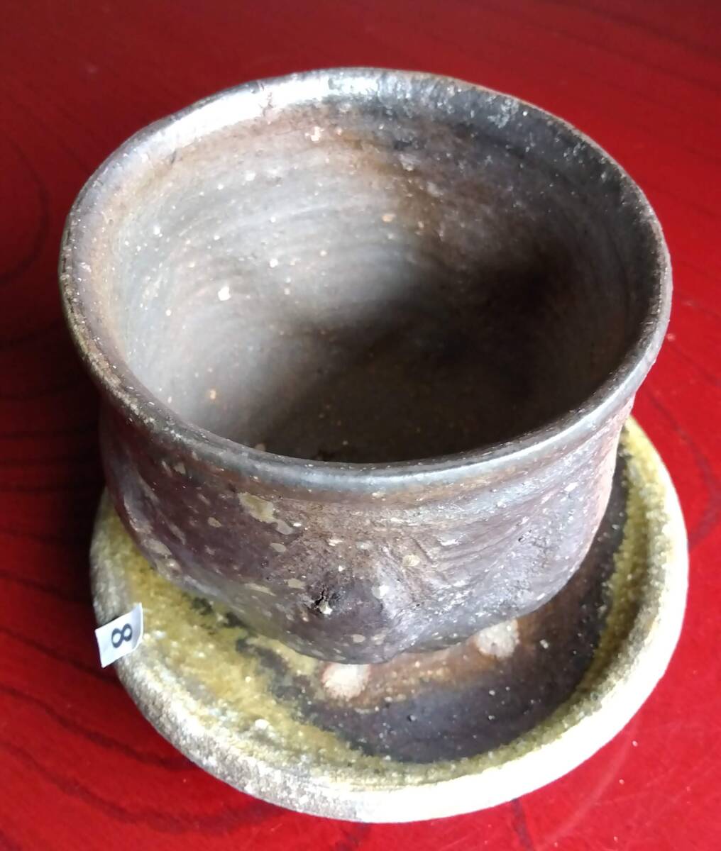 越前焼の名工 白越不朝(塩越窯)自然灰釉の究極美が迸る逸品 大小のぐい呑み/湯呑2種及び茶托3点セット No:8 穴釜陶芸美に全霊を捧げられている白越不朝師が亘ずね感謝されている薪と炎の神様がもたらしてくれた自然灰釉の究極の逸品です。師の「至高の技」が心和む「究極窯変美」に焼き上がり、器に浮き出る自然釉は越前焼魅力の世界を再確認させてくれます。 越前陶土「青ねば・赤べと・太古土」を活かす形で作られ、温かみのある土色に自然釉が組み合わさった魅力的な作品です。質素ながら極めて奥深い風合い 無限の幽玄美/崇高美おも感じさせる心和む自然灰釉美 技巧的表現をも還元焼成させ際立つ(陶土)が表す独特の質感自然釉(しぜんゆう)が織りなす作品です。 師がこれらの作品に使用されている技法【しのぎ:シンプルで上品さと荒々しさを併せ持ち日本の伝統的な装飾技法】「面取り」技法の1つであるしのぎが見事に表現されています。 また師の作品に於いては 口縁(こうえん)口造(くちづくり)が薄く、特にほんの少し外側に反って製作されている為 大変口当たりがよく、すっと口の中に入ってきます。 器は、素朴でありながらもモダンな印象を持ち、和洋どちらにも馴染みます。 また窯の中の温度や置かれた場所によってまったく異なる模様や色合いが出ていますので、薪と炎の神様が生み出した偶然の景色を楽しみ 器そのものを育てる事を楽しんで下さい。 茶托は135mm前後の口径約10mm厚みの茶托皿を3本ねじたてによる約60mm直径15mm厚のどっしりとした高台が茶托皿を支える重厚な仕上げとなり全面をおおう自然灰釉美がぐいのみ湯を幽玄美へいざないます。 落札時 2番目 又は 3番目のどちらの作品を選択されたのかご連絡宜しくお願い致します。【 No:8 サイズ ぐいのみ/湯のみ 小 口径95mm高さ49/50mm高台12mmX46mm 大 口径85/88mm高さ84/88mm高台12mmX55mm 茶托サイズ: 口径118mm高さ27mm 高台径68mm厚み10mm 】