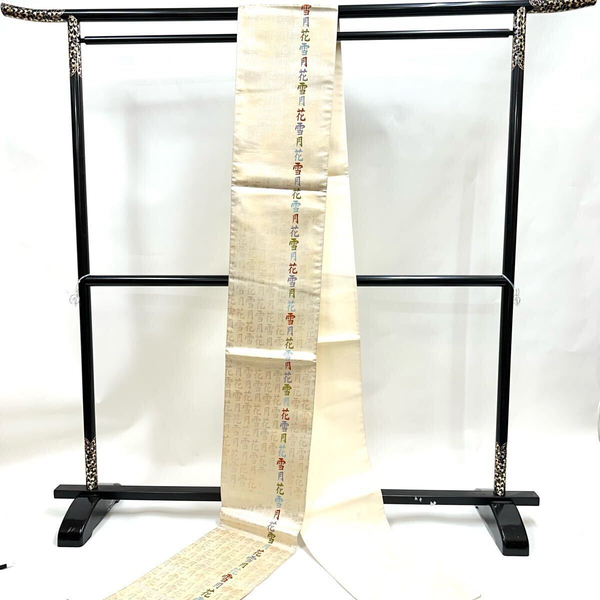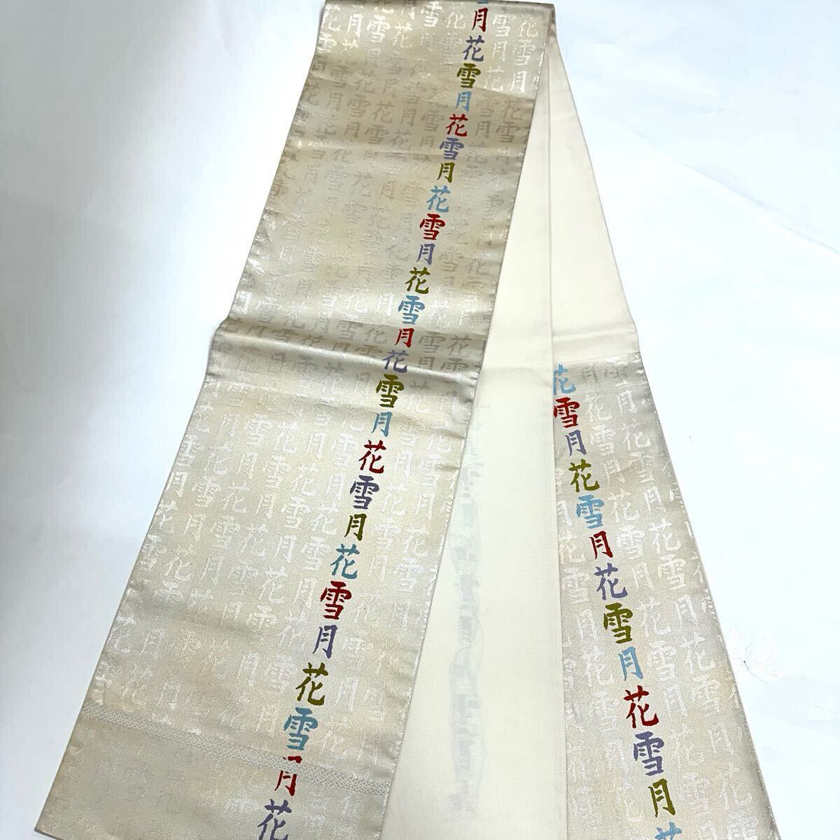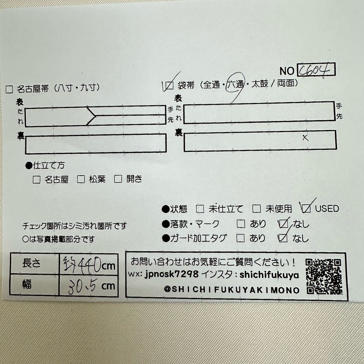 【七福】c604 逸品 高級品 正絹 袋帯 六通 雪月花 金糸 刺繍 豪華