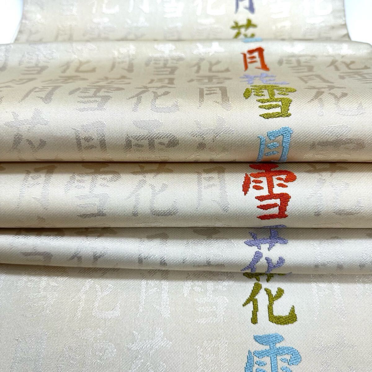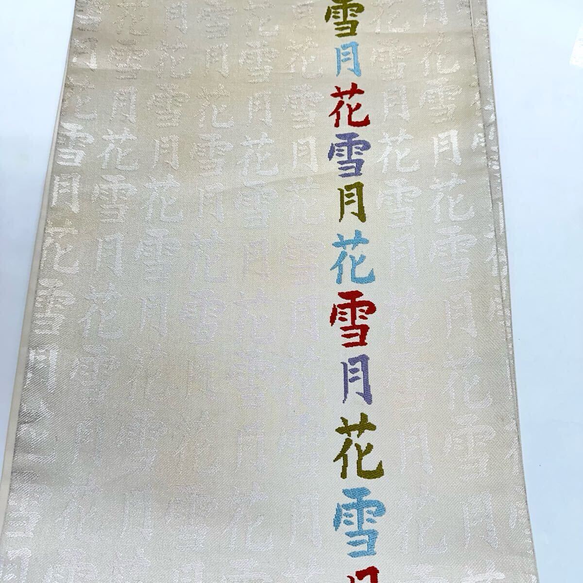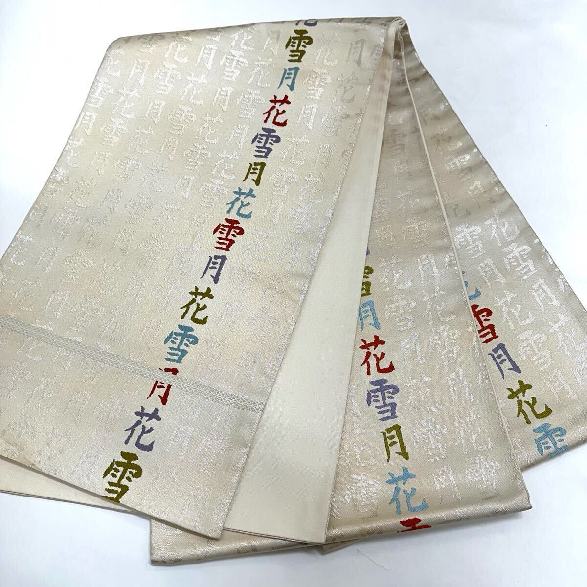 【七福】c604 逸品 高級品 正絹 袋帯 六通 雪月花 金糸 刺繍 豪華