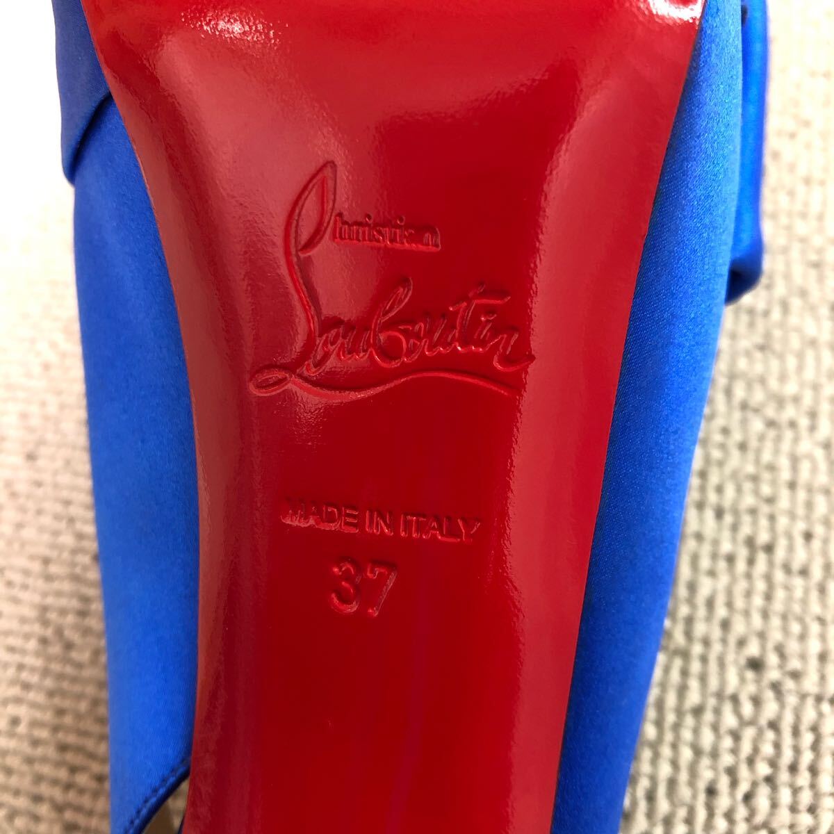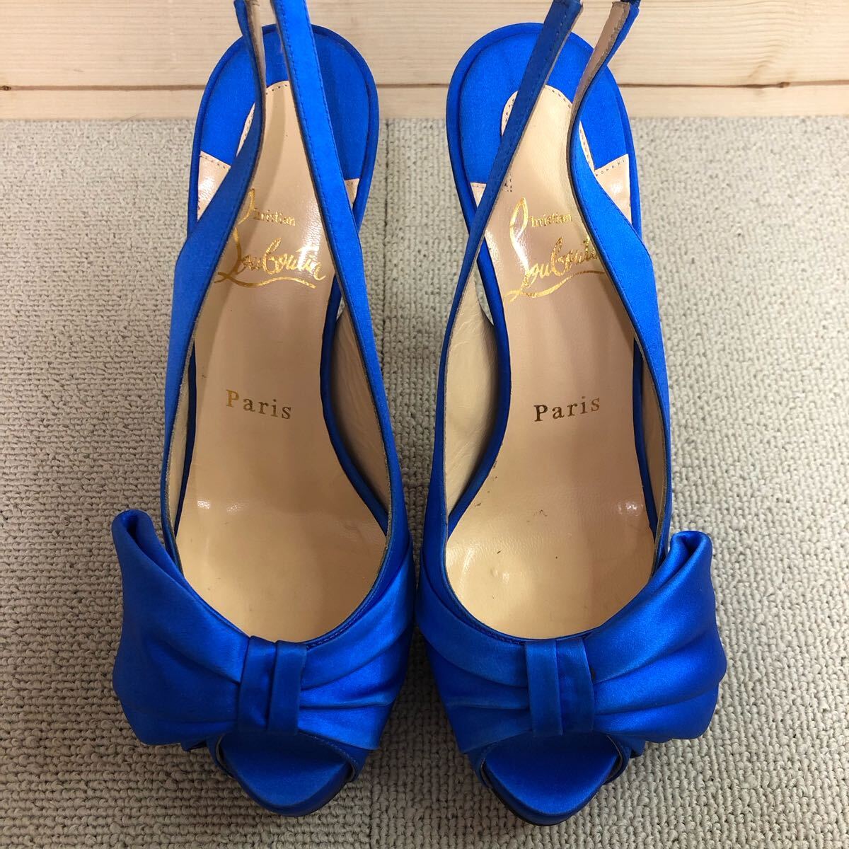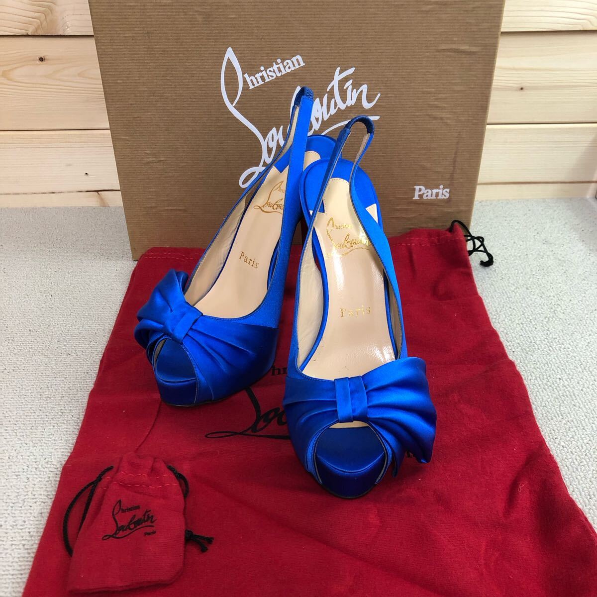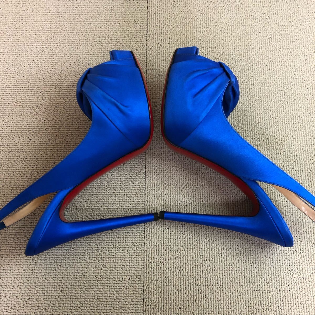 (30)Christian Louboutin Neptun Vendome Satin Bow Slingbacks ブルー 青 37 クリスチャン ルブタン ネプチューン パンプス ハイヒール