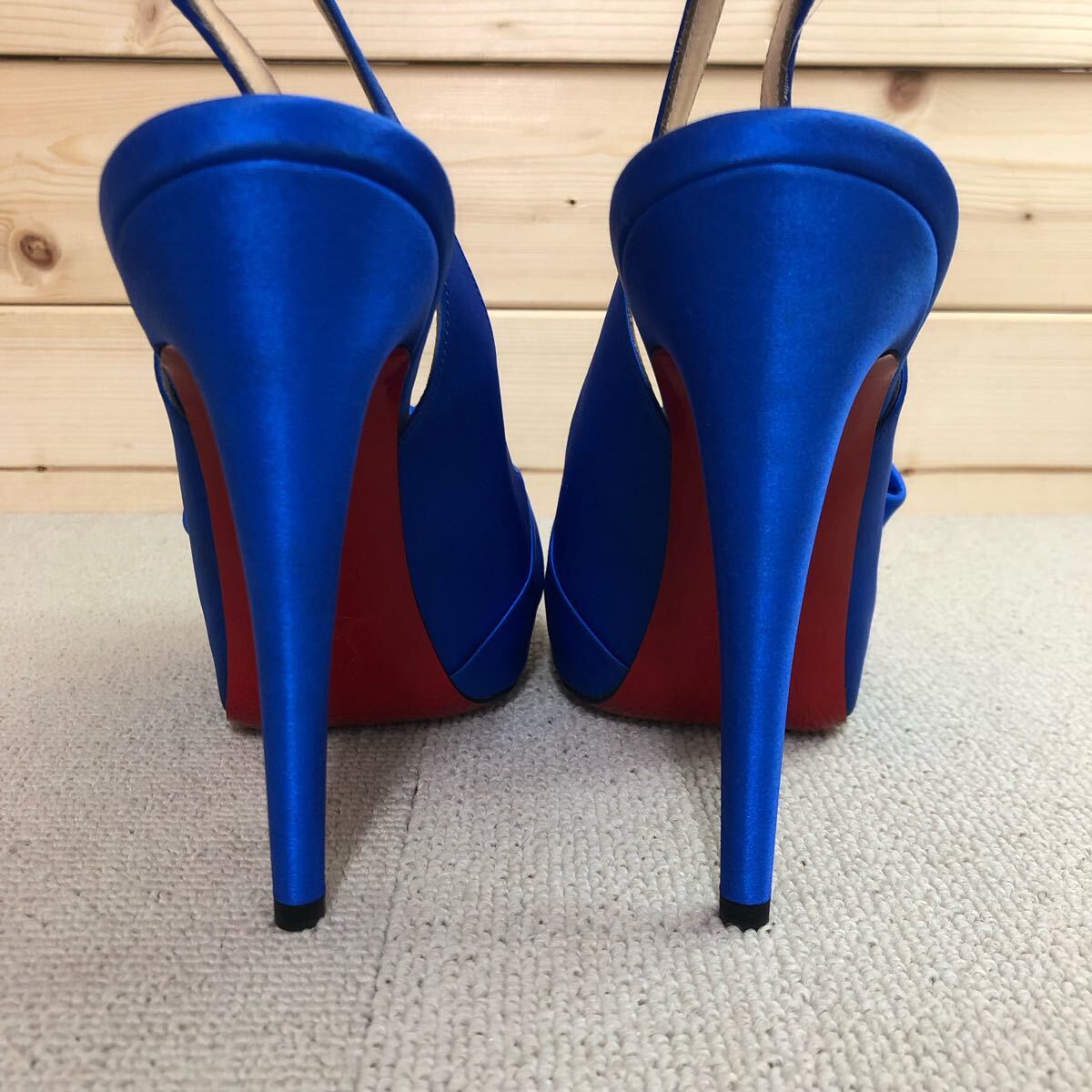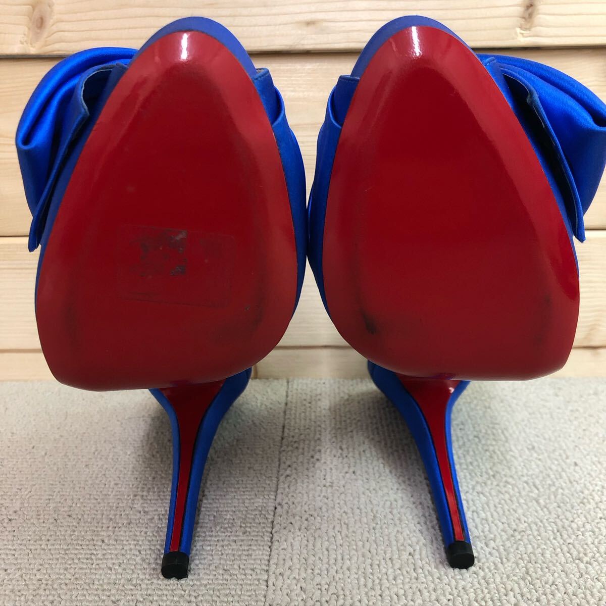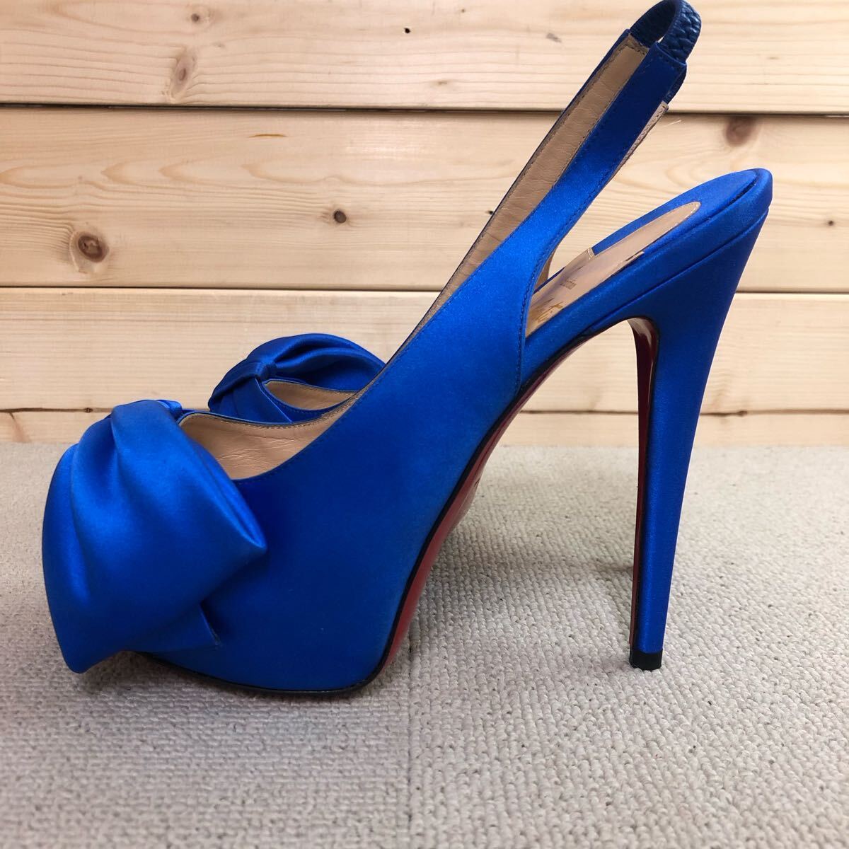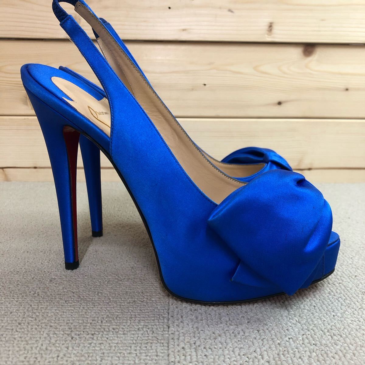 (30)Christian Louboutin Neptun Vendome Satin Bow Slingbacks ブルー 青 37 クリスチャン ルブタン ネプチューン パンプス ハイヒール