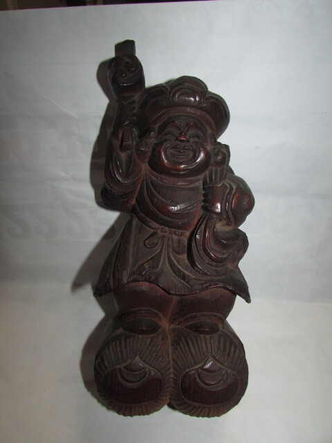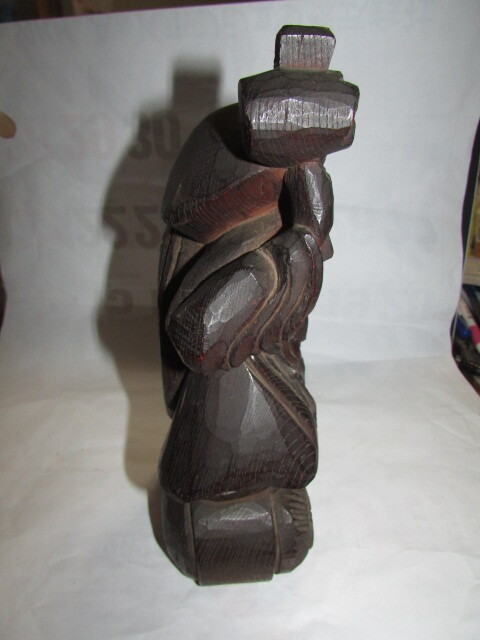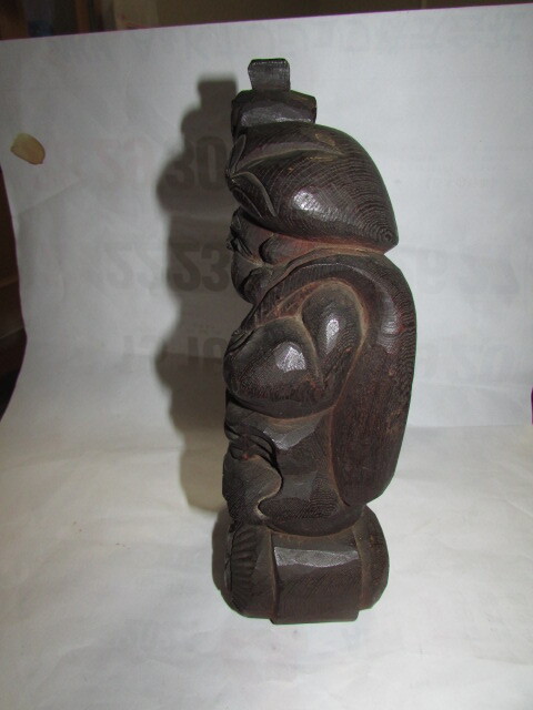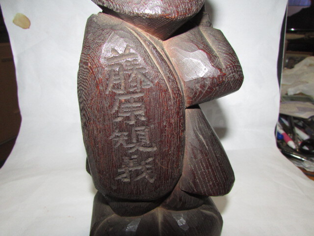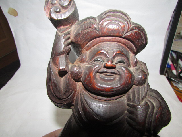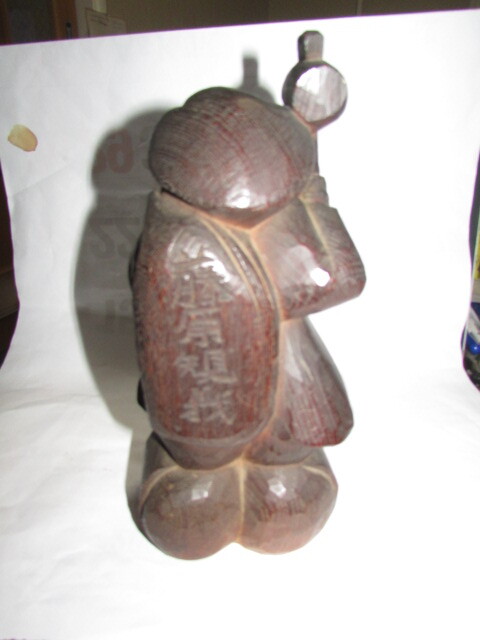 1000円値引・即決商品(会津若松・旧家・蔵出し)明治時代・藤原規義銘有り (福顔のとろとろ味わいのある木彫・大黒様)貴重・珍品