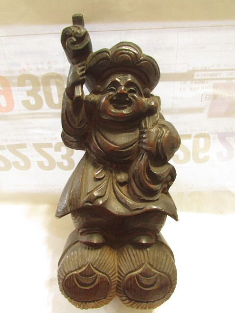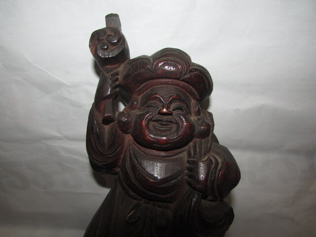 何とも可愛い福顔の一木で彫り上げた木彫りの大黒様です。