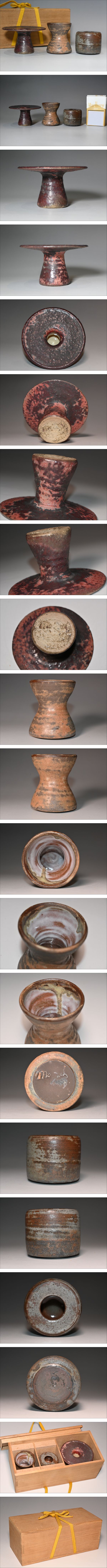 詳細不明 蓋置 三点 木箱付 茶道具 茶具 二点在銘 窯変 | |||||