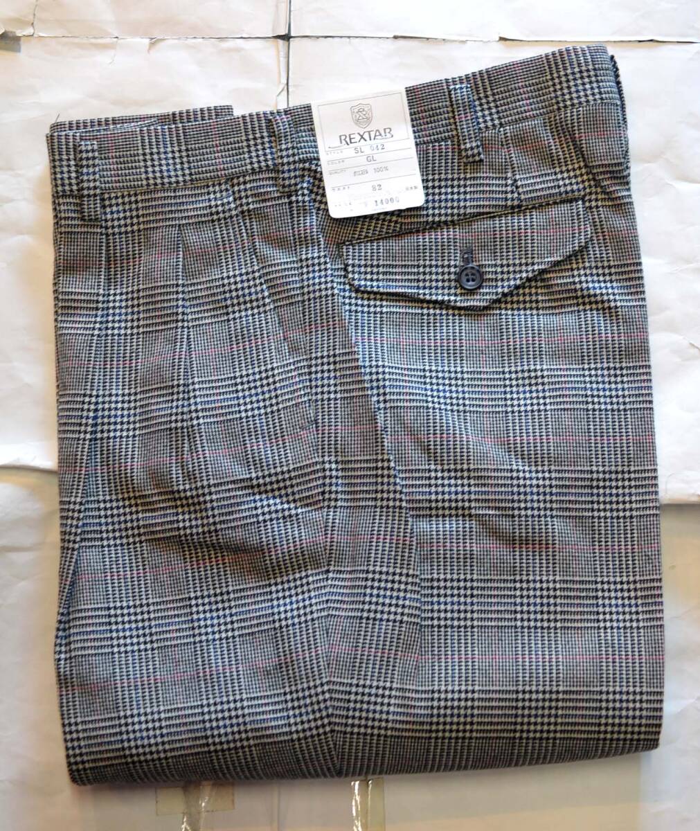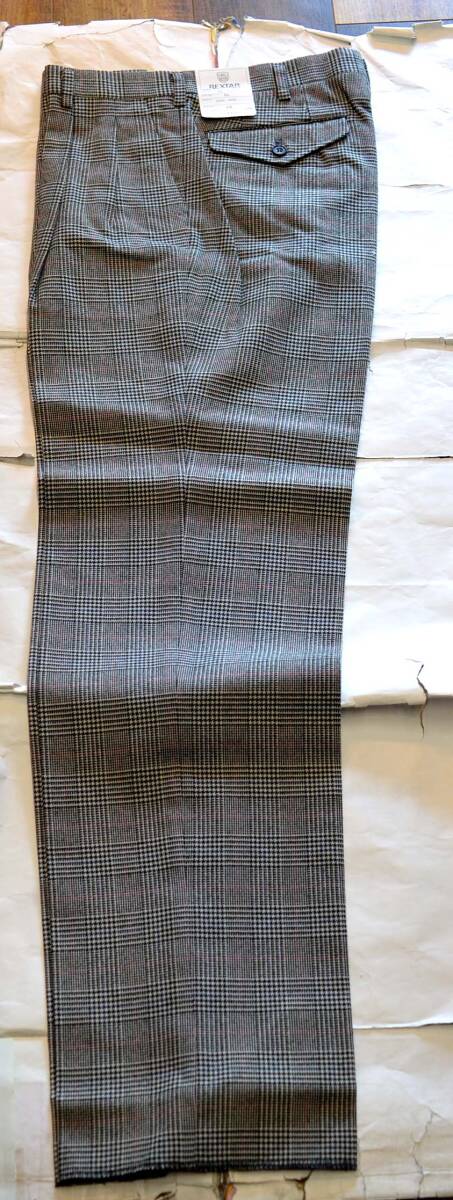 新品未使用のデッドストックです。80~90年代ぐらいのヴィンテージです。ポリエステル100%。ダメージはありません。定価14000+TAXです。ツータックのお洒落なスラックスで色も良く、穿きやすいのではないでしょうか。補償はありませんが、レターパックプラスで発送できます。