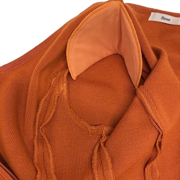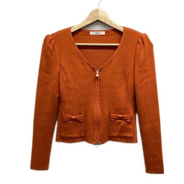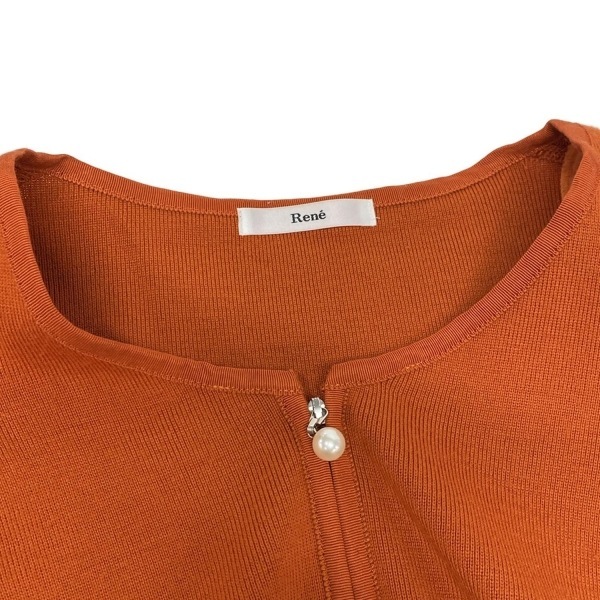 ルネ Rene ブルゾン サイズ36 S - オレンジ レディース 長袖/ニット/ジップアップ/肩パッド/フェイクパール/リボン/春/秋 ジャケット