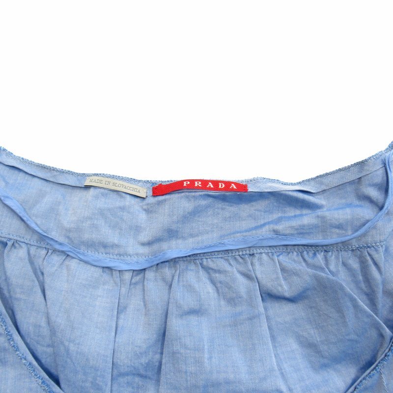 2006年 プラダ old PRADA シャンブレー 半袖 ワンピース ドレス ミニ丈 チュニック ダンガリー コットン オールド アーカイブ M 青