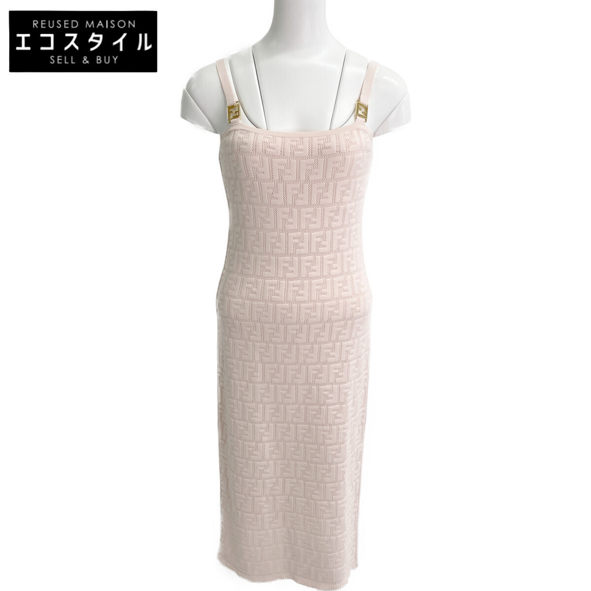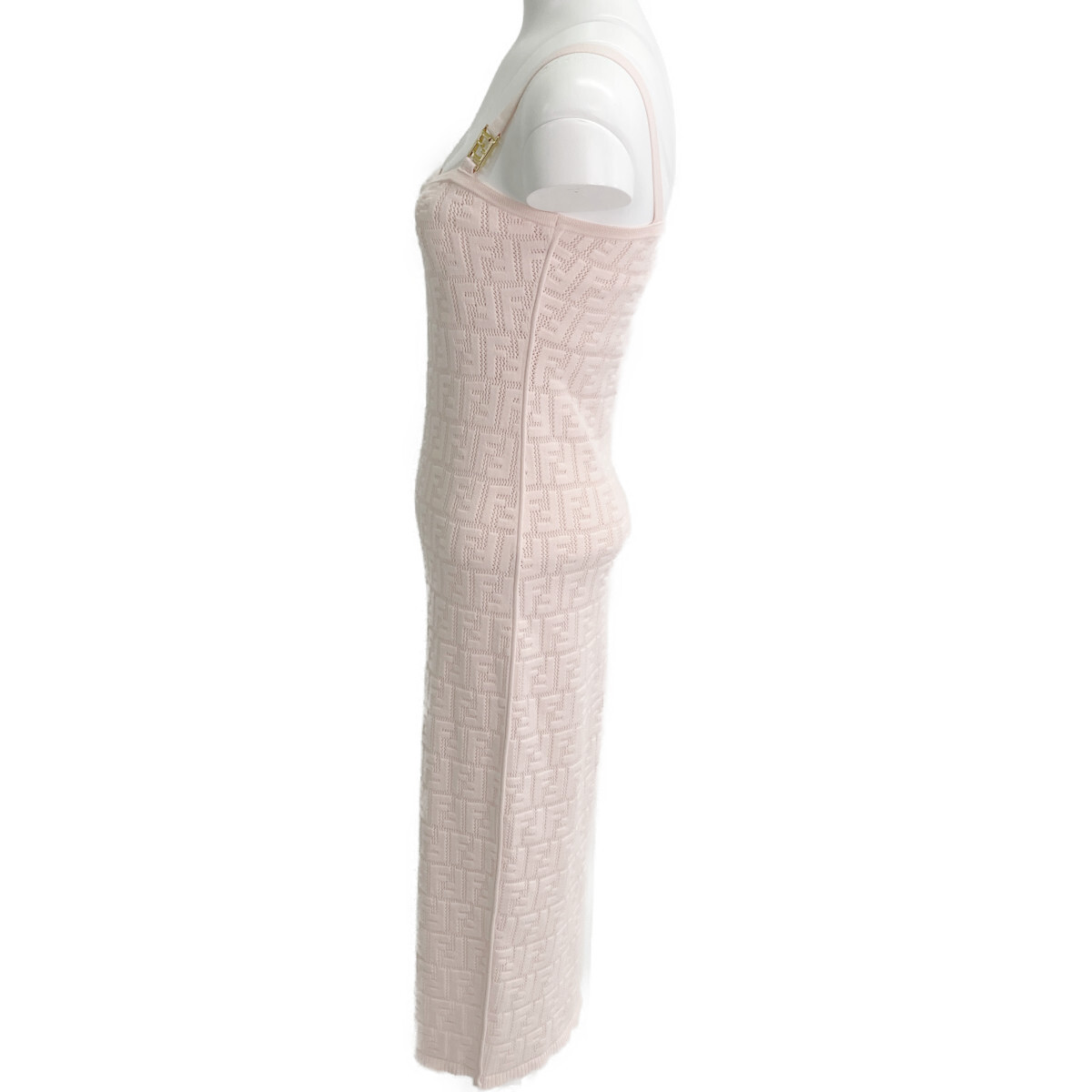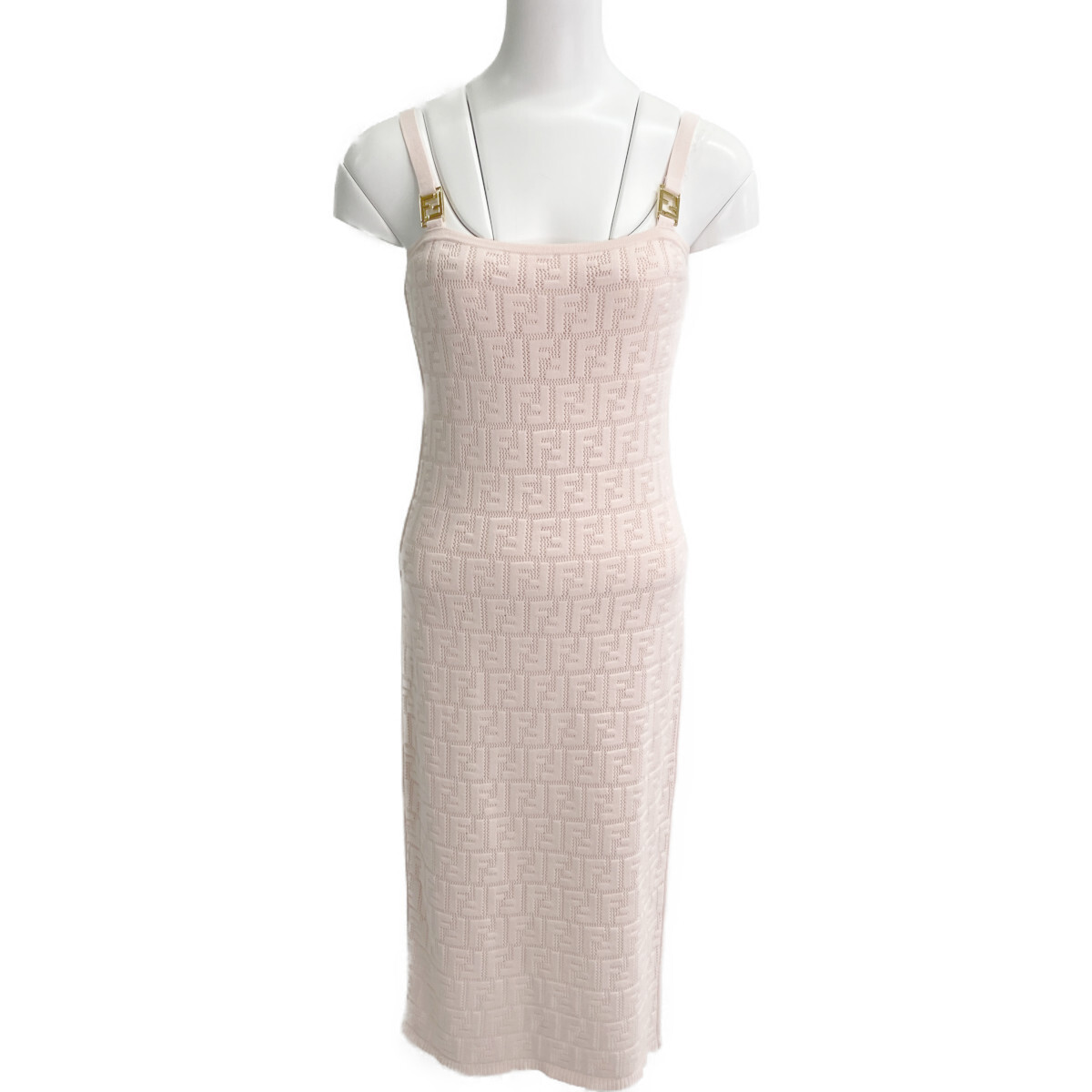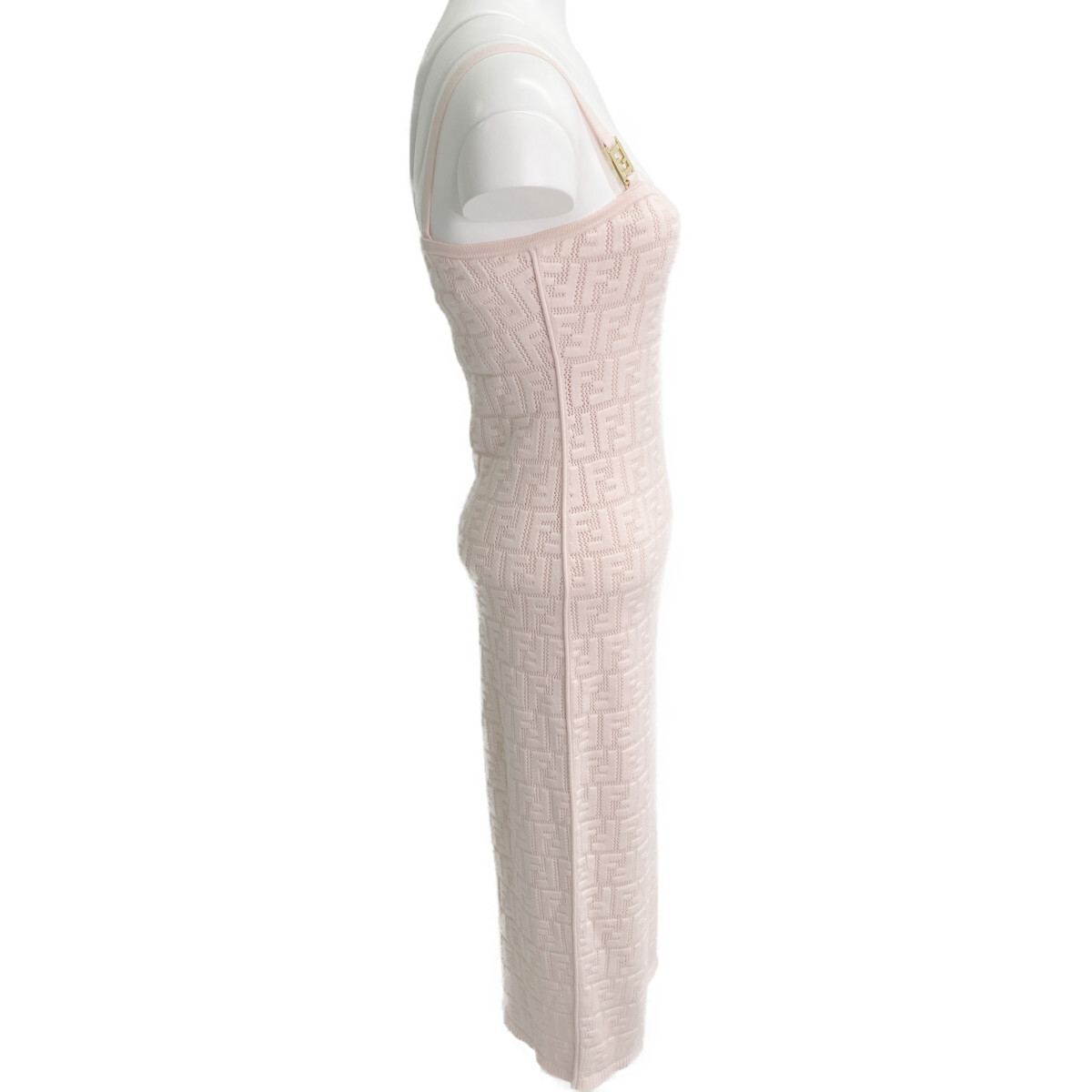 FENDI フェンディ 国内正規 FZDA17 FF ズッカ柄 ノースリーブ ニット ワンピース 38 パウダーピンク レディース