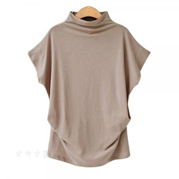 Tシャツ tシャツ レディース 半袖 フレンチスリーブ 体型カバー ゆったり ストレッチ素材 ハイネック トップス カットソー きれいめ おしゃれ シンプル 無地 薄手 ボトルネック 春 夏 秋 韓国風