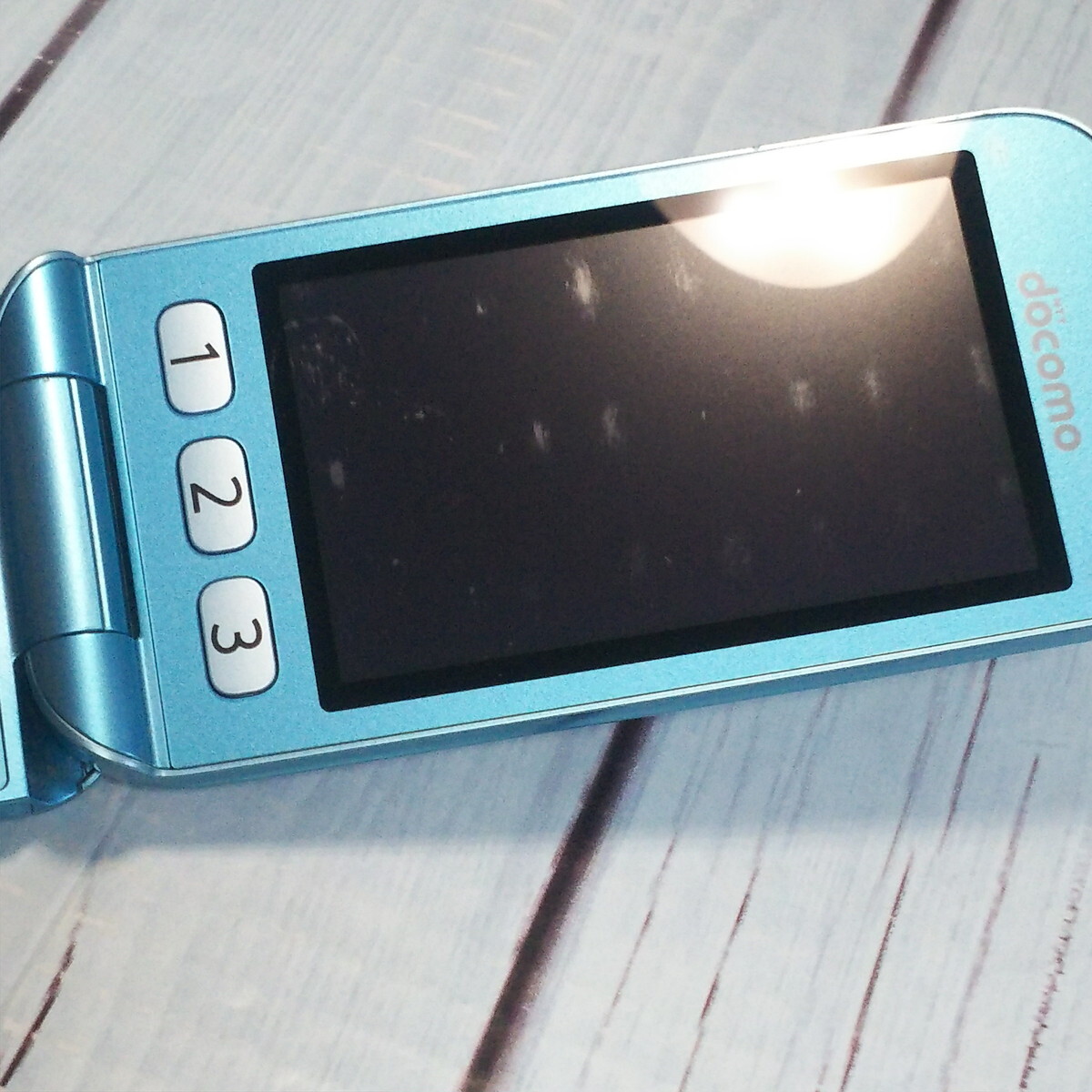 【液晶の状態】ヒビとボタン痕、若干の色むらがみられますが、液晶ON時に目立つ傷や汚れはありません。