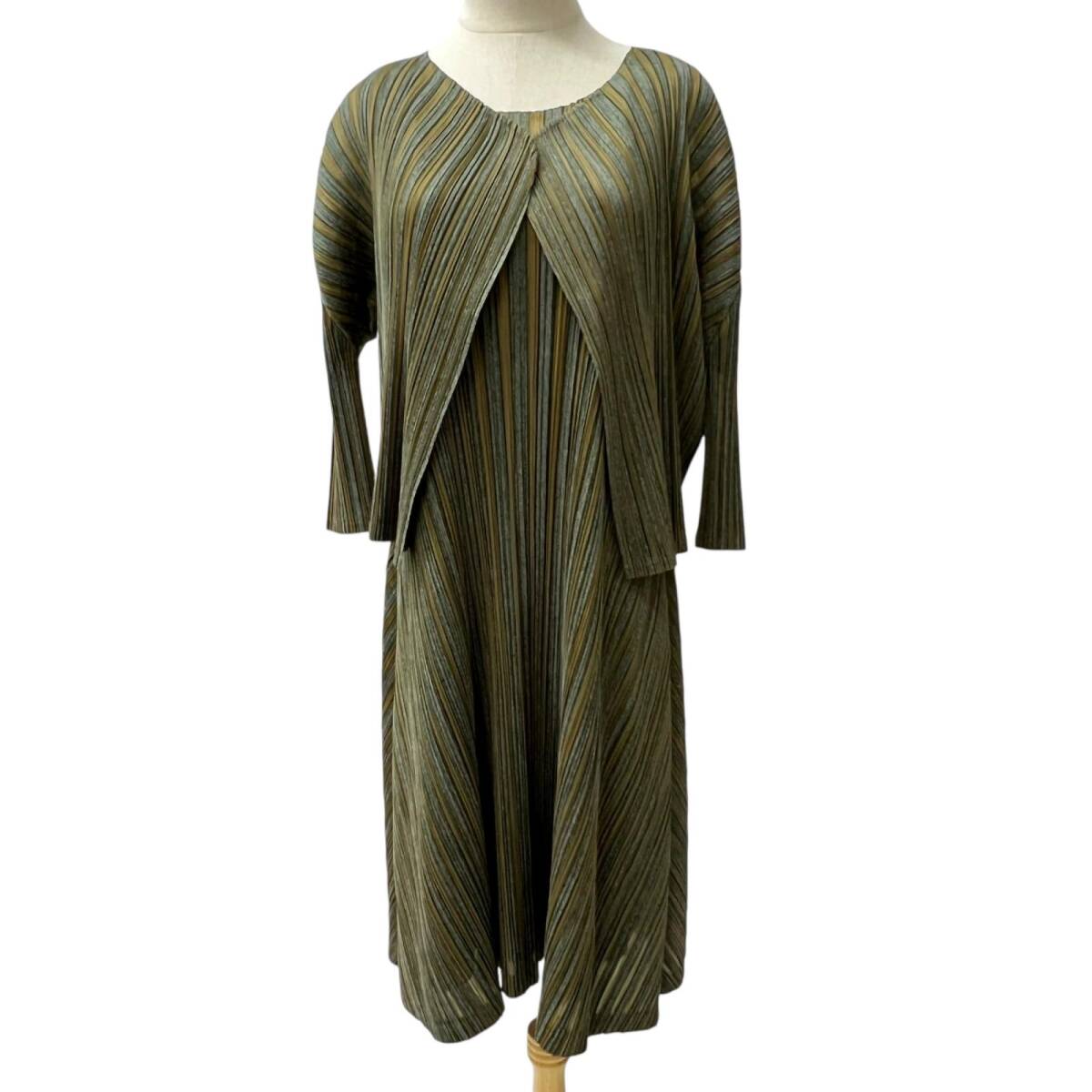 イッセイミヤケ PLEATS PLEASE プリーツプリーズ ワンピース カーディガン インナーつき カーキ系 レディース サイズ3、4 |