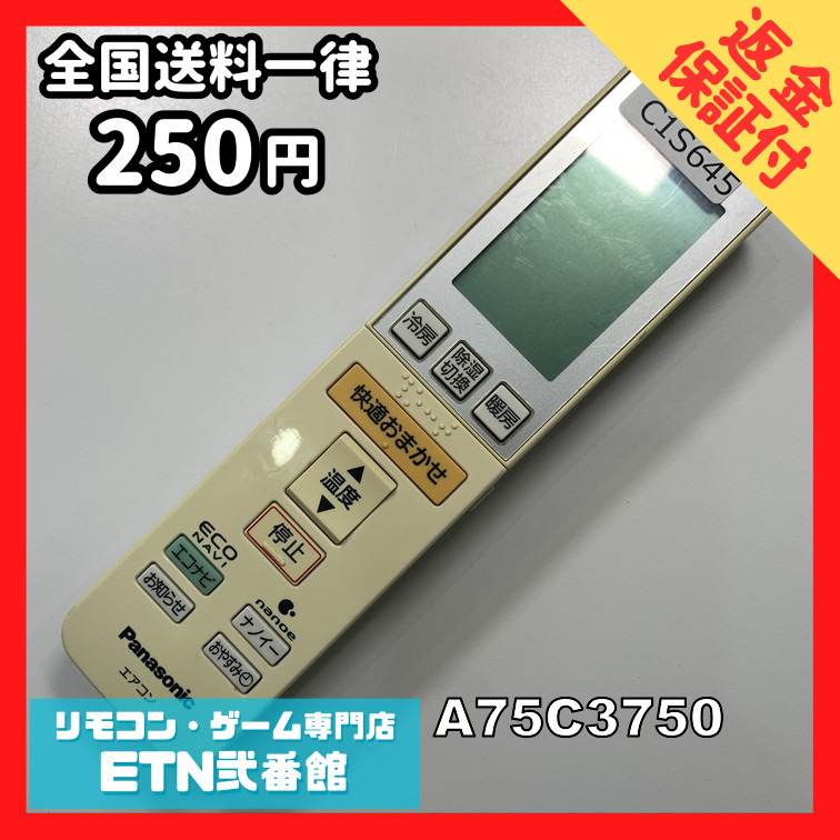 C1S645 【送料250円】エアコン リモコン / Panasonic パナソニック A75C3750 動作確認済み★即発送★ 冷房 暖房