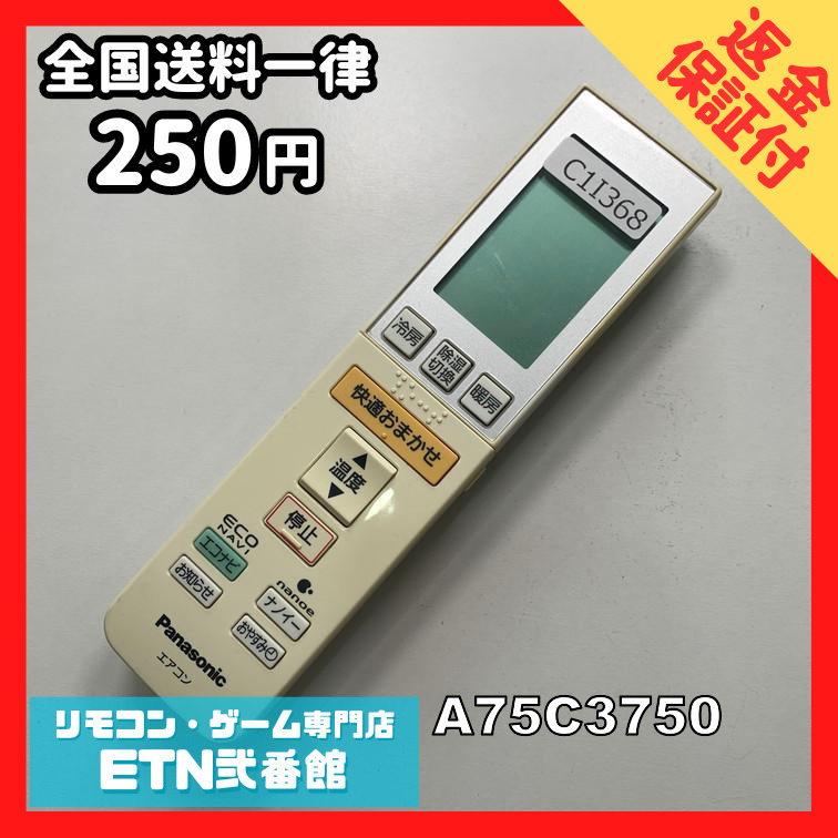 C1I368 【送料250円】エアコン リモコン / Panasonic パナソニック A75C3750 動作確認済み★即発送★ 冷房 暖房