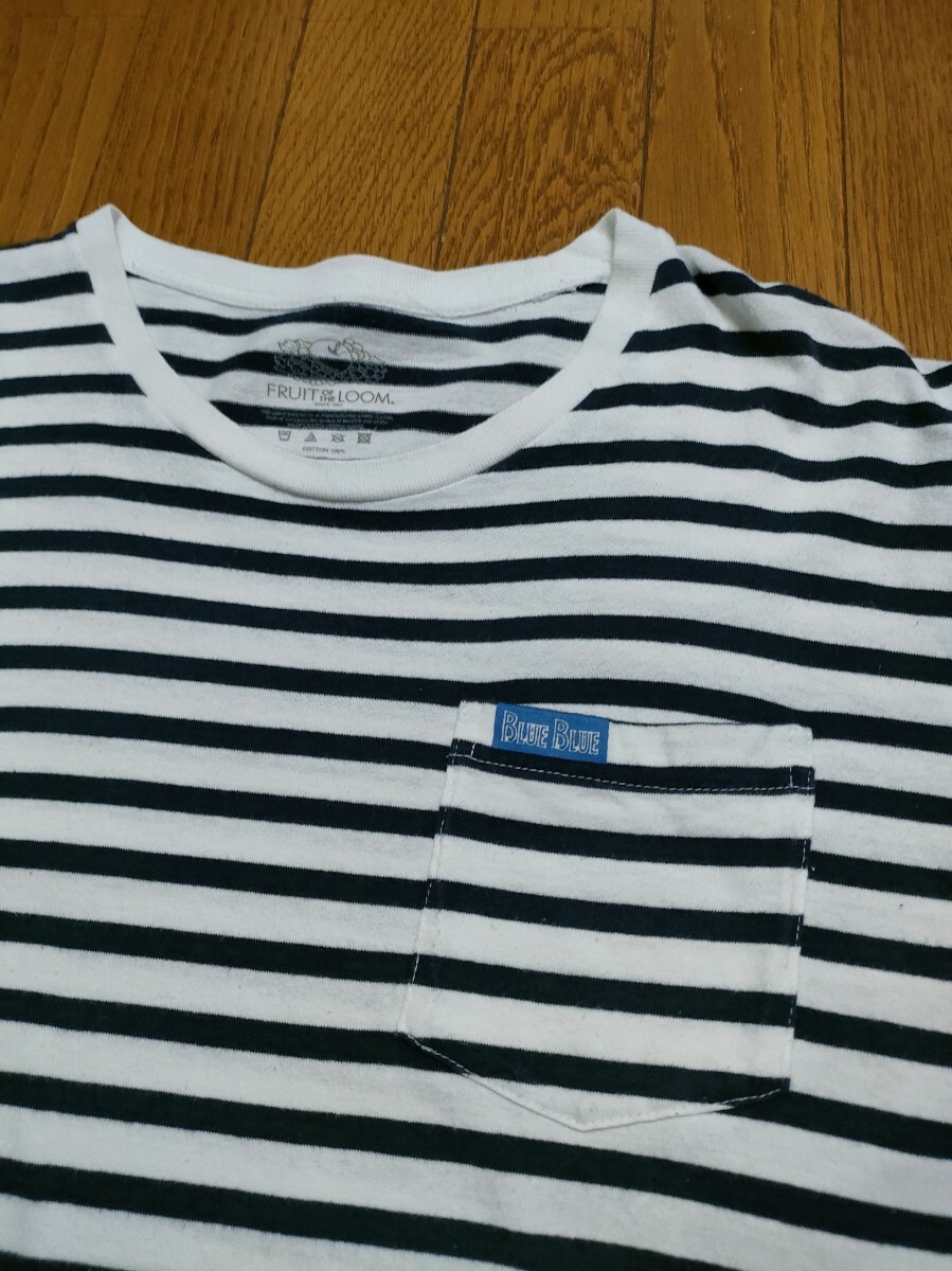 ブルーブルー ボーダーTシャツ BLUE BLUE 半袖Tシャツ ハリウッドランチマーケット FRUIT OF THE LOOM別注 ハリラン メンズ サイズL