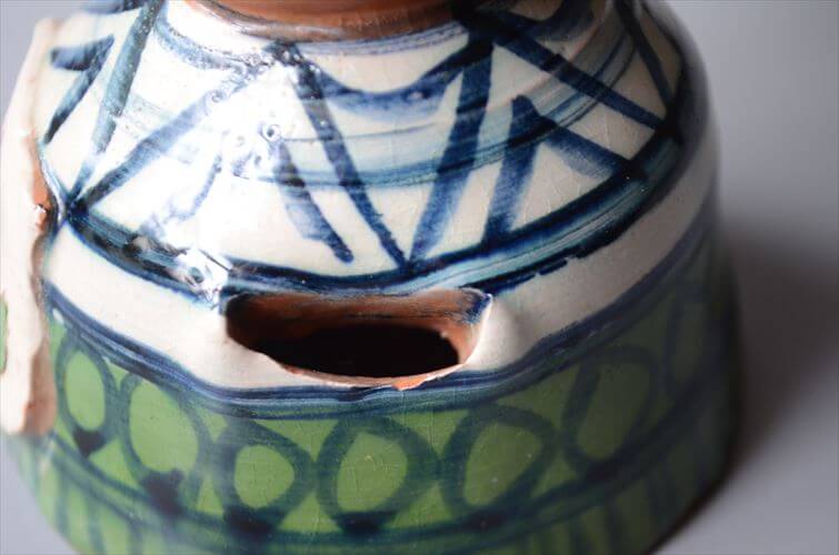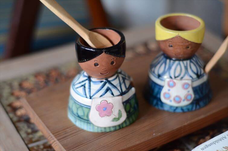 日本ではあまり馴染みがありませんが、頭部分に卵を入れて使われていたようでサイドにはスプーンを収納する窪みもあります。