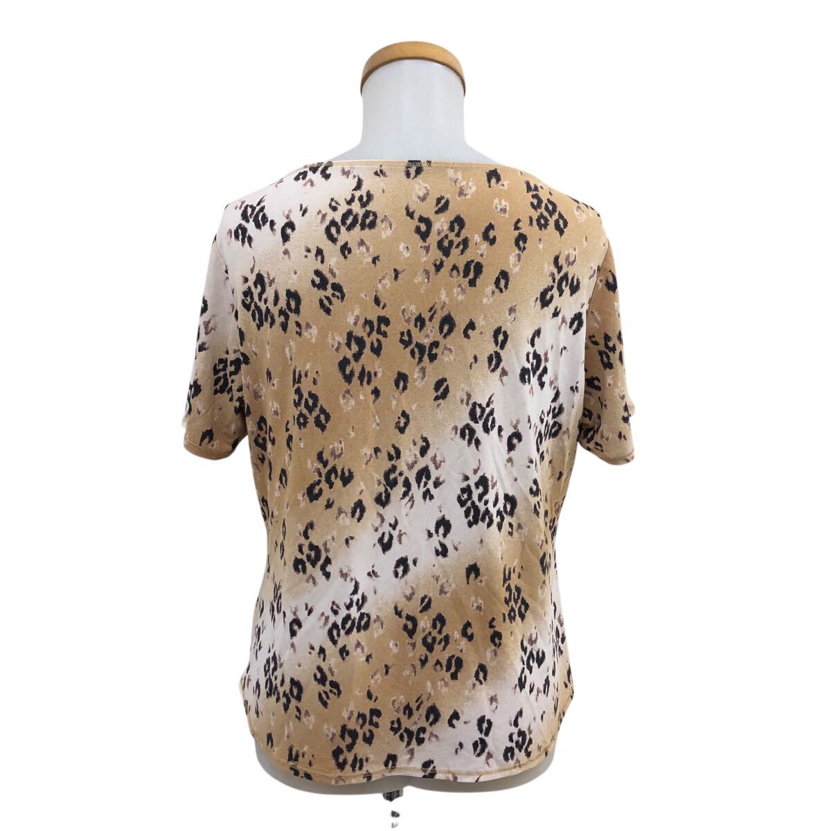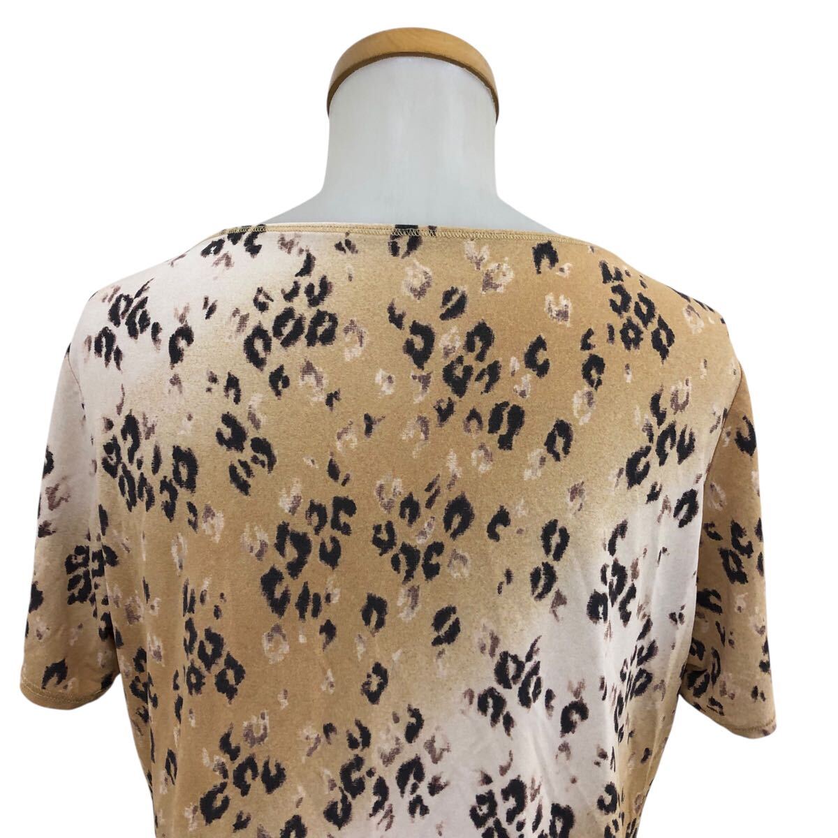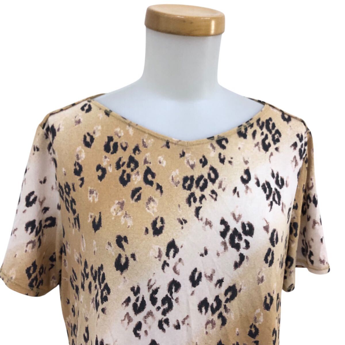 Nm312-24 大きいサイズ EVEX by KRIZIA エヴェックス バイ クリツィア ヒョウ レオパード柄 半袖 Tシャツ シャツ カットソー ベージュ系 44