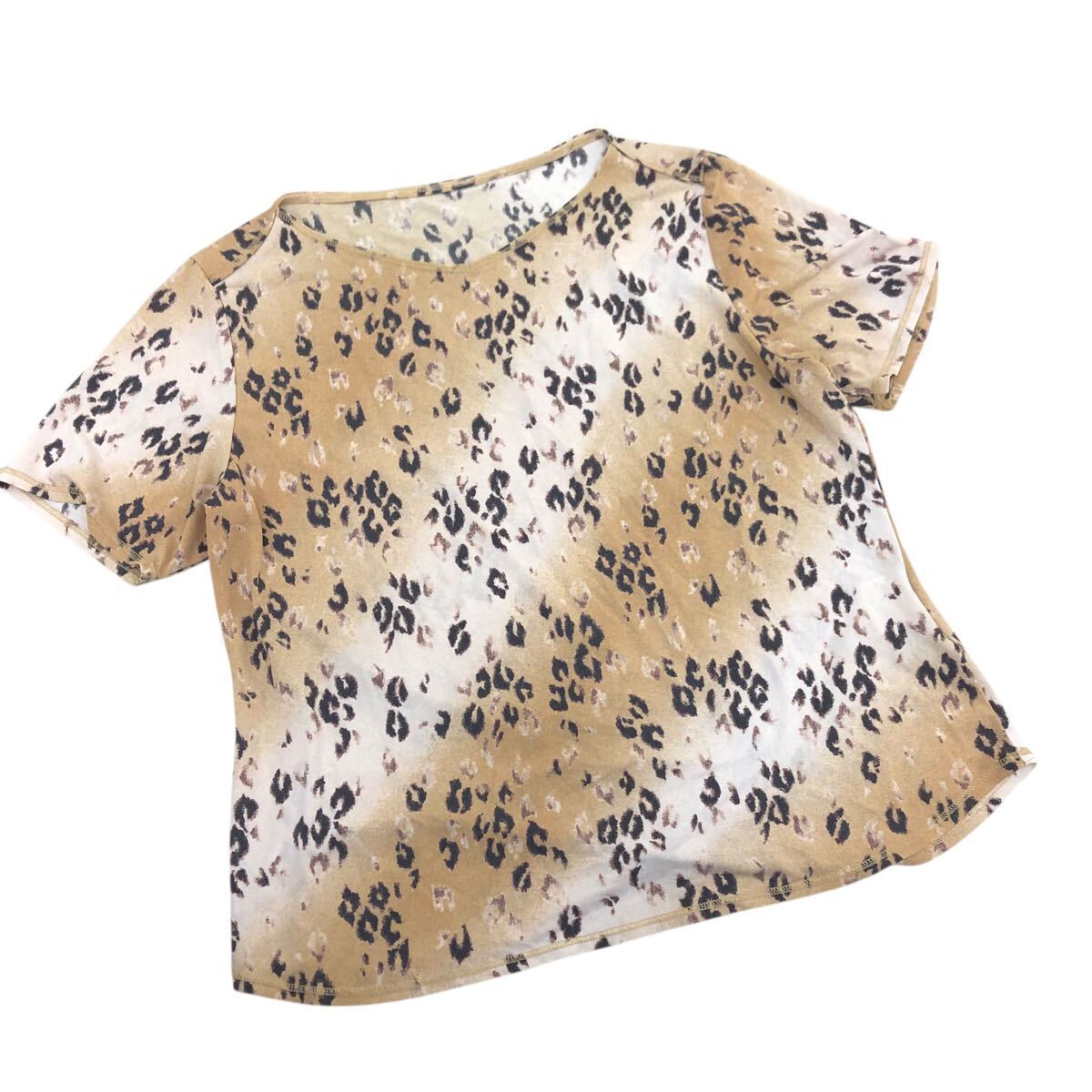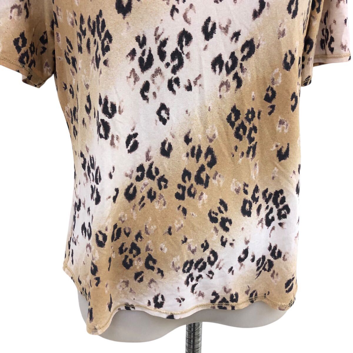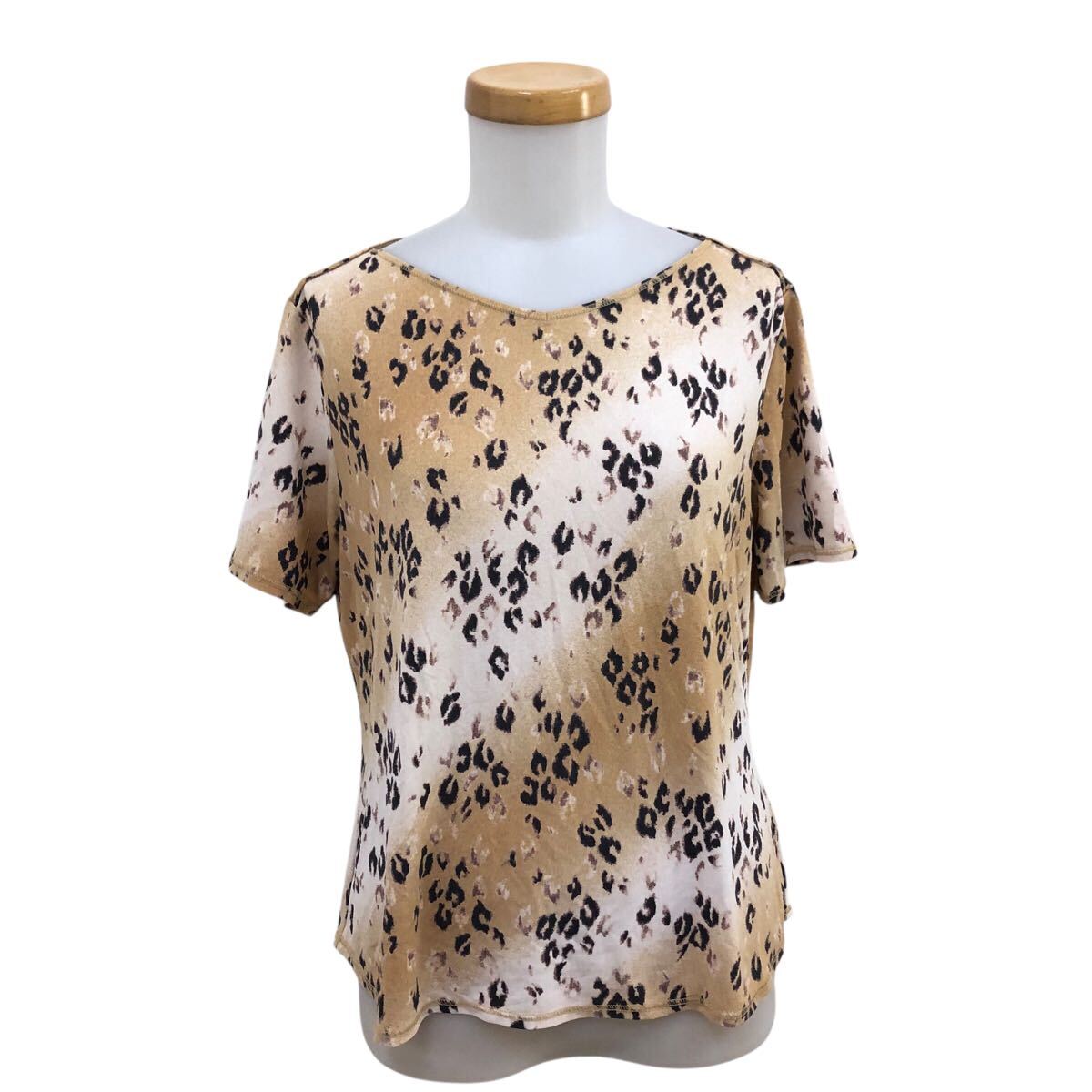 Nm312-24 大きいサイズ EVEX by KRIZIA エヴェックス バイ クリツィア ヒョウ レオパード柄 半袖 Tシャツ シャツ カットソー ベージュ系 44