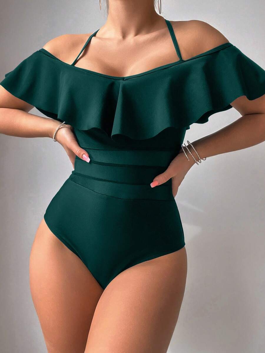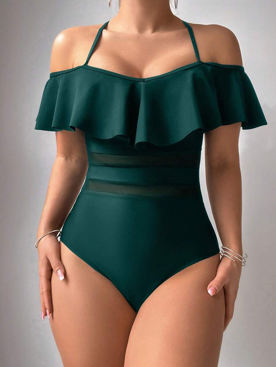 レディース 水着 ワンピース 女性用 無地 ホルターネック メッシュパッチワーク ワンピース水着、ホリデービーチに適しています