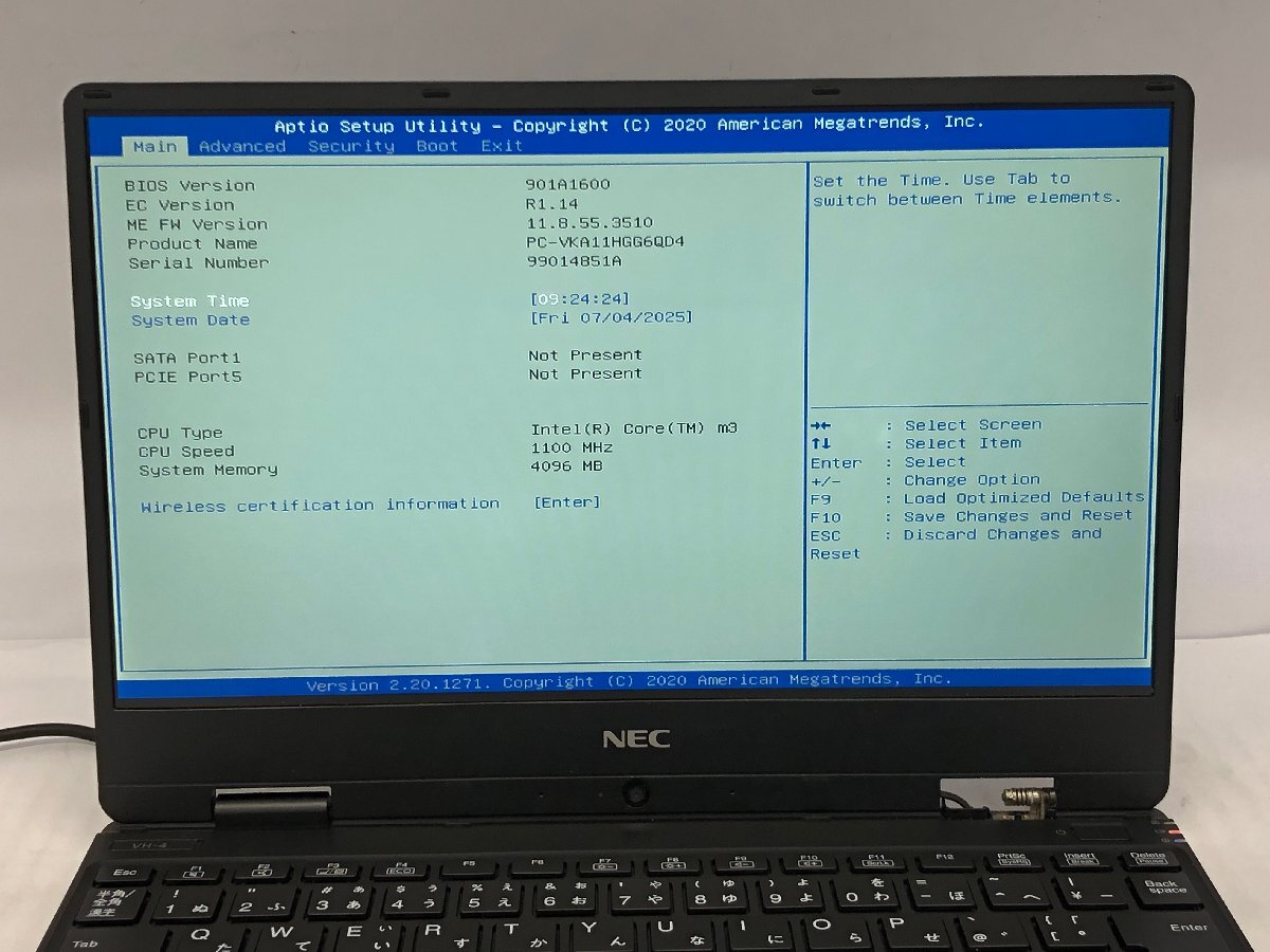 ジャンク/ NEC PC-VKA11HGG6QD4 Intel Core m3-8100Y メモリ4.1GB ストレージ無し 【K17496】