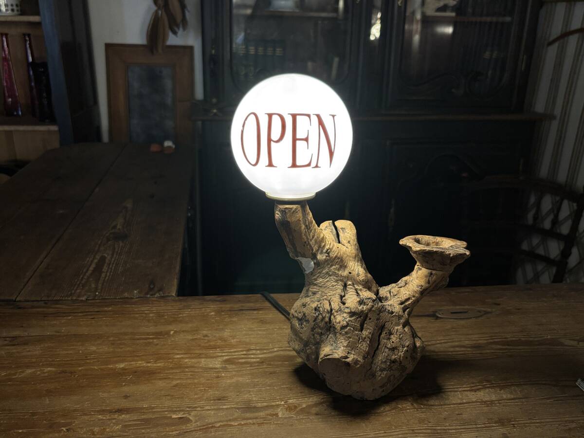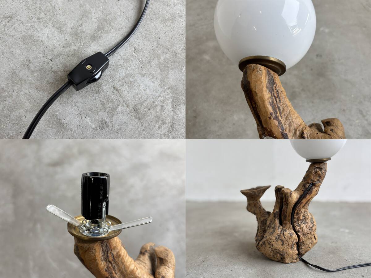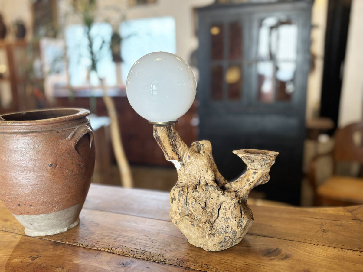 フランスアンティーク プリミティブウッドテーブルランプ/アトリエ/自然素材/枝/丸太/OPENサイン/オープン/古材/antique/ブルータリズム