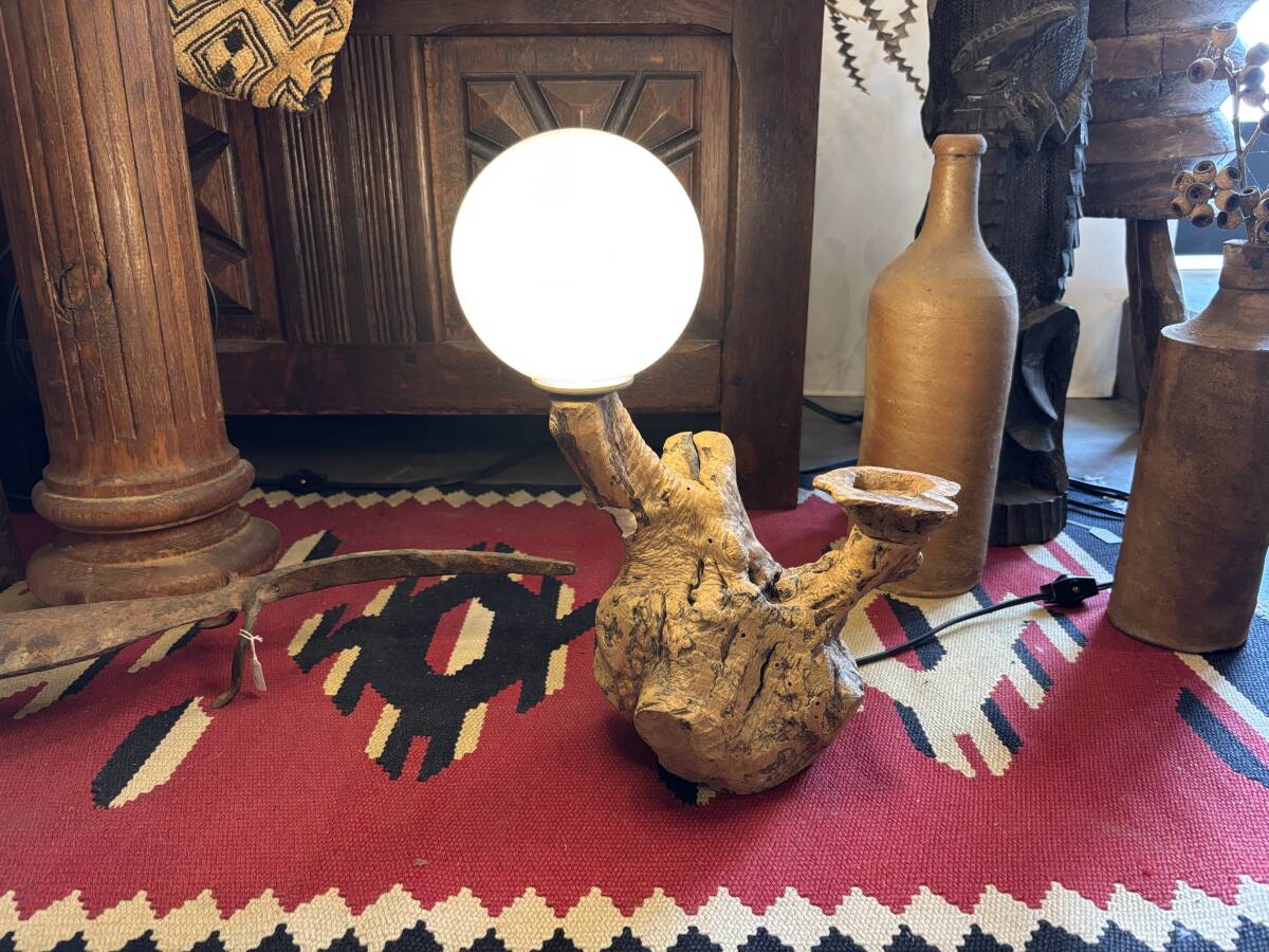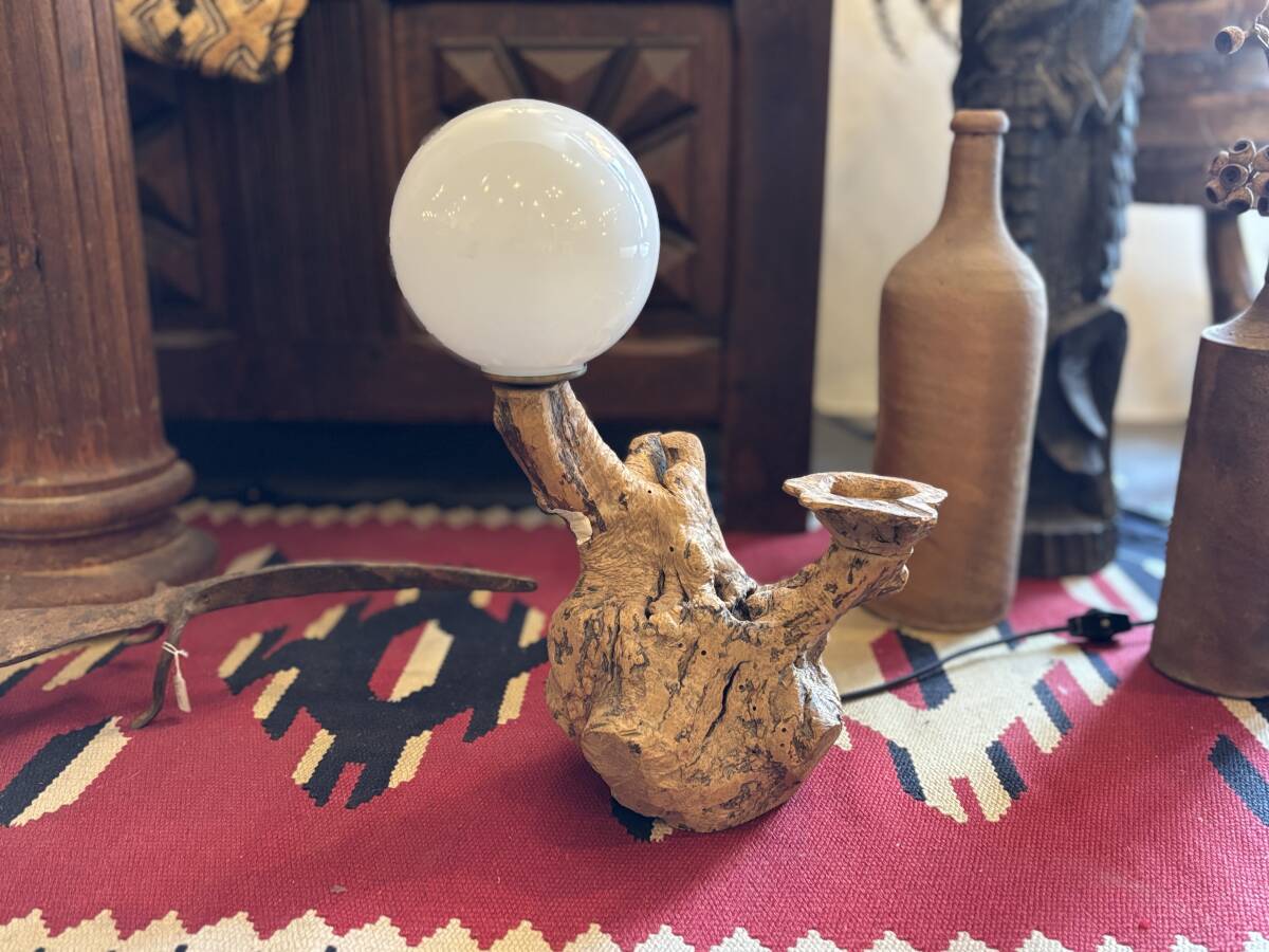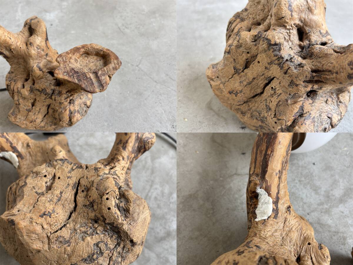 フランスアンティーク プリミティブウッドテーブルランプ/アトリエ/自然素材/枝/丸太/OPENサイン/オープン/古材/antique/ブルータリズム