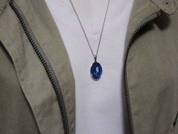 サイズ | サイズ:★トップの大きさは、21×14ミリです。 ★CRY.ロイヤルブルー ディライトスワロフスキー 1石の大きさは、18×13ミリです。 ★チェーンは、ロジウムメッキの 喜平チェーンの50cmです。 |