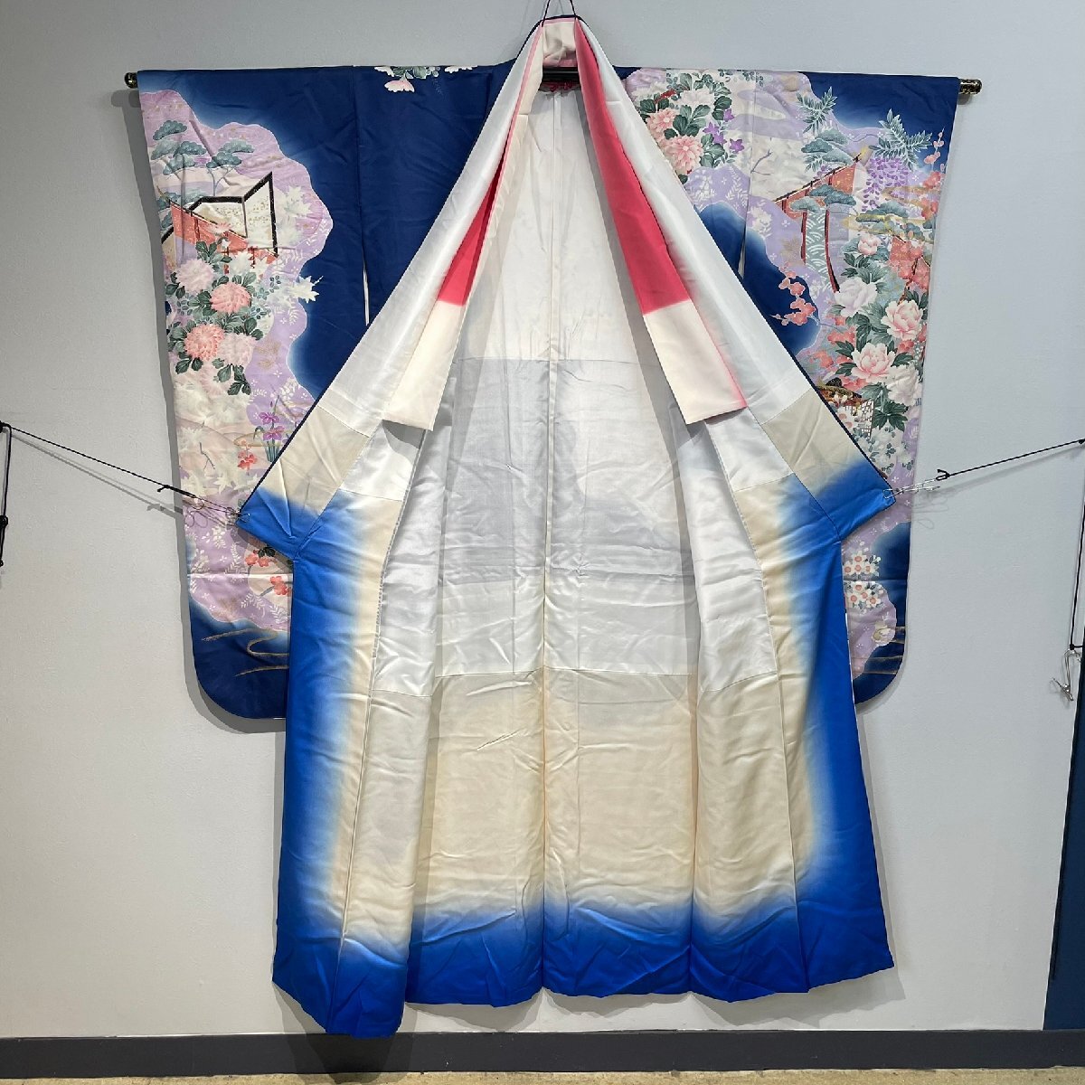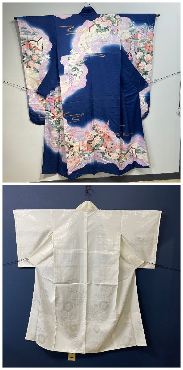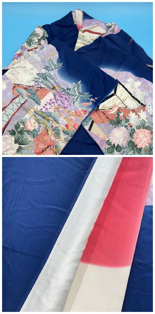 【18427Q041】振袖 襦袢 セット 和服 着物 和装 和装コーデ レトロ 伝統衣装 和風 藍色 紺色 ネイビー 晴れ着 フォーマル 成人式 可愛い