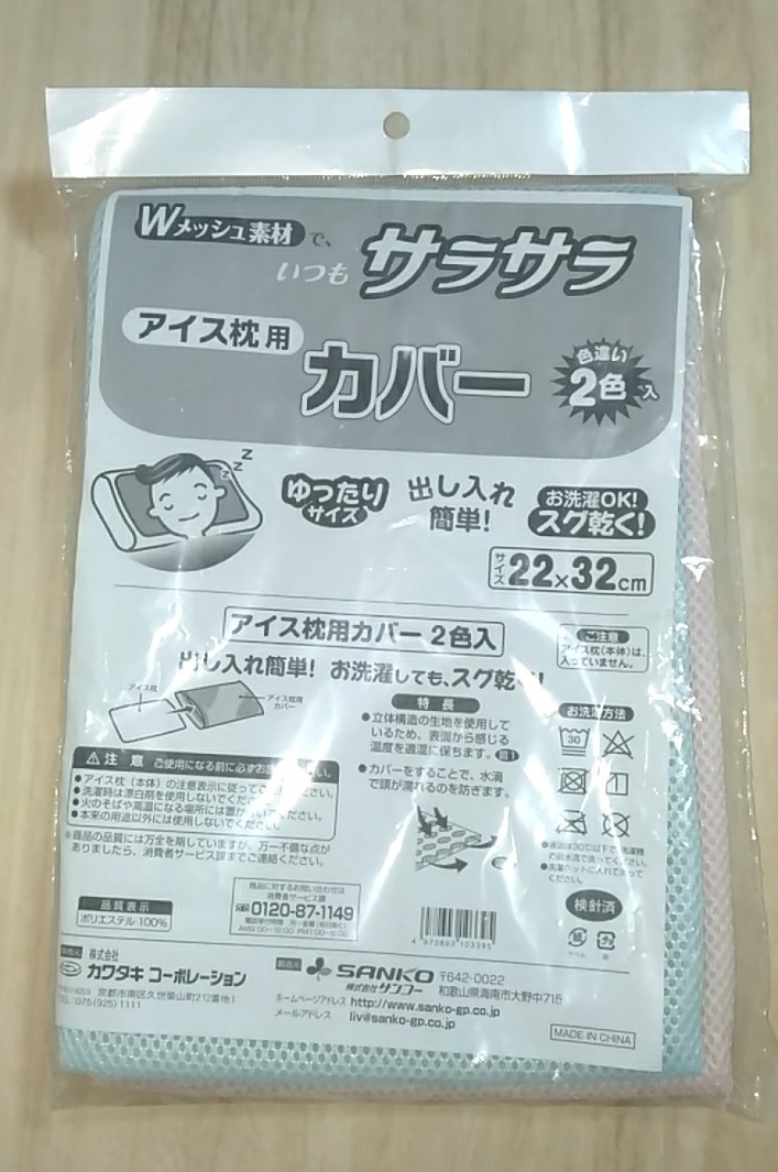 [m16077y z] アイス枕用カバー 2色入 × 2袋 Wメッシュ素材で、いつもサラサラ ゆったりサイズ