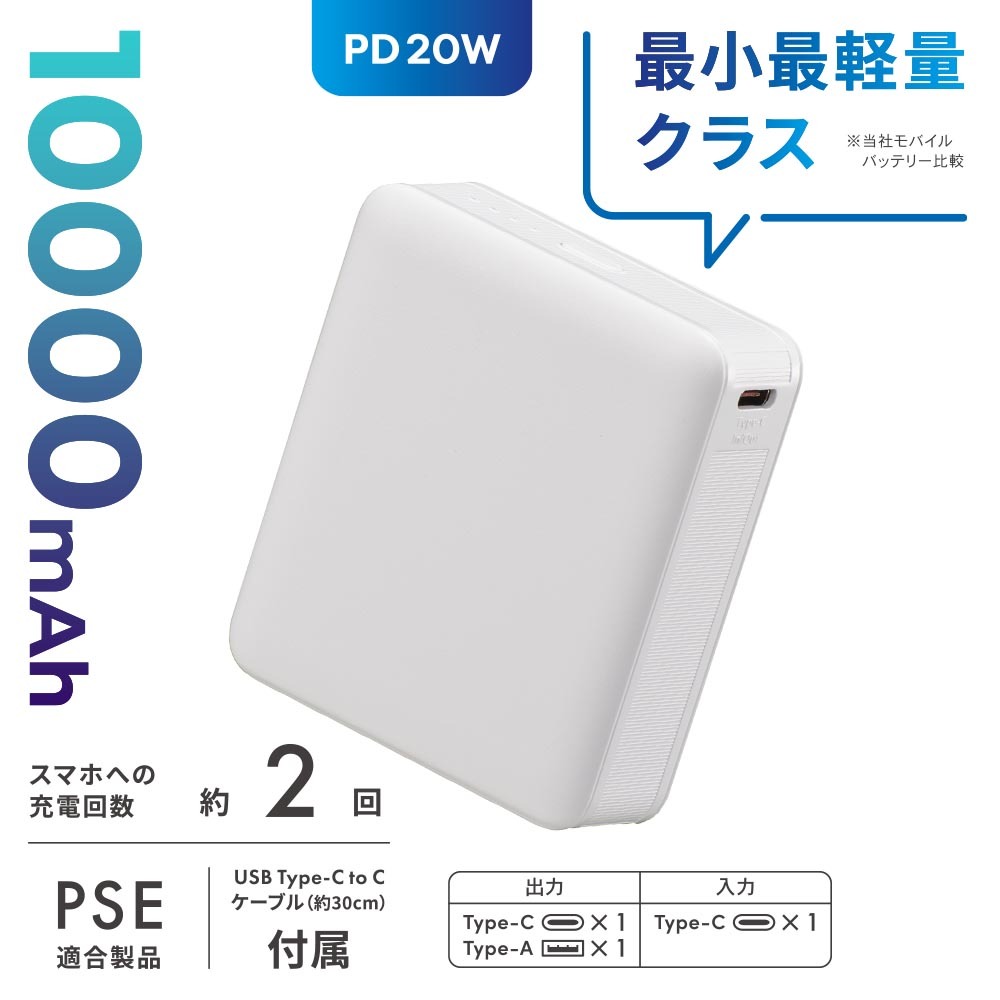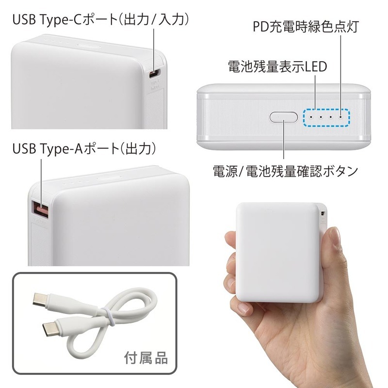 ■ 付属品:充電用ケーブル(USB Type-C to USB Type-Cケーブル約30cm)、保証書付取扱説明書